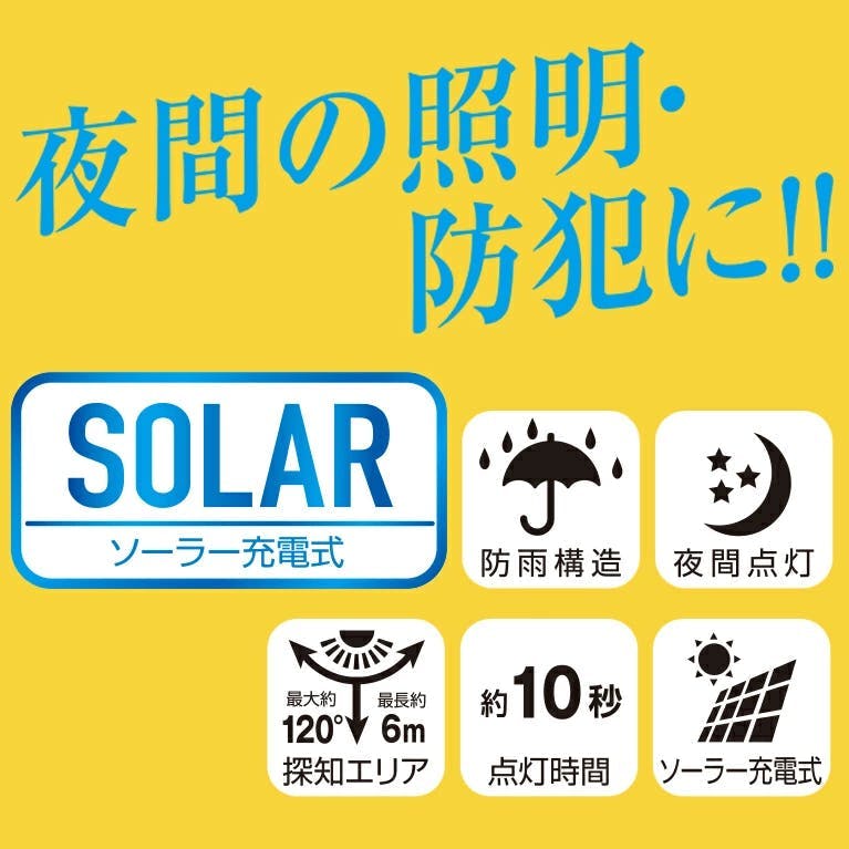 2台セット 大進 センサーライト ソーラーライト 屋外用 800ルーメン LED 防雨 人感 暗くなると点灯 防犯ライト DLS-WL010 4939736906033