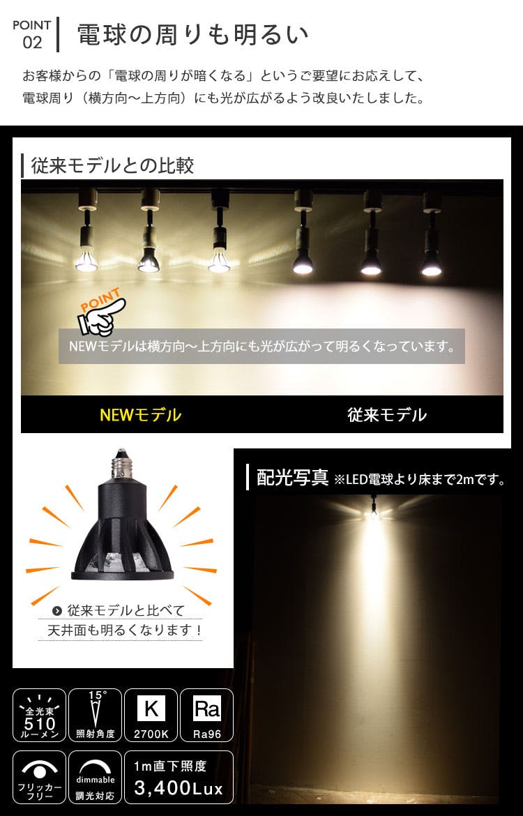 ■フリッカーフリー設計なので長時間使用しても目が疲れにくく、頭痛や肩こりの軽減、ちらつきがない安定した光環境で集中力の向上、写真や動画撮影への影響軽減「ローリングシャッター現象」や縞模様の映り込みを防ぐ効果があります。※完全にフリッカーの影響を抑えたい場合は、全体の照明を統一してください。
