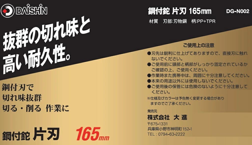 DAISHIN 鋼付鉈 片刃 165mm 大進 園芸 ガーデニング 農業 女性 庭 農作業 家庭菜園 用具 工具 ナタ なた アウトドア キャンプ ケース