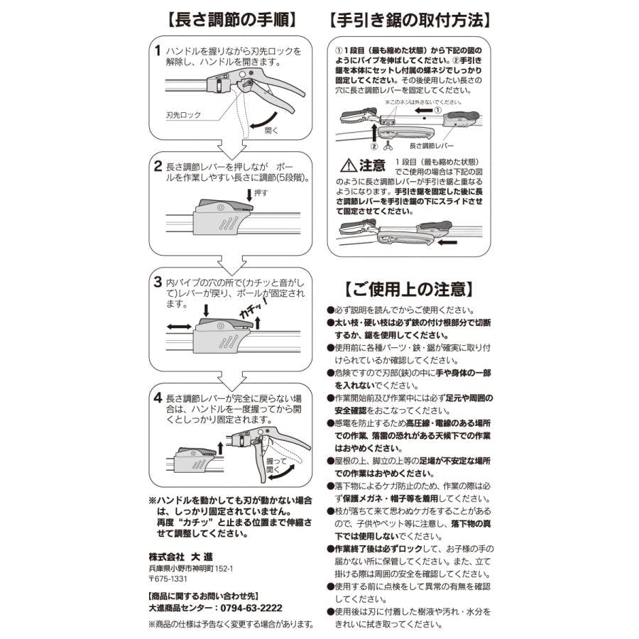 【最長3m 強力なアンビル刃 手引き鋸付き 】高枝切りバサミ 大進 手引き ノコギリ 付き 高枝 鋏 太い枝 高枝切鋏 キャッチ機能 高枝切り鋏 落とさない 枝切りバサミ 枝切り鋏 剪定鋏 枝きりばさみ はさみ 4939736701577