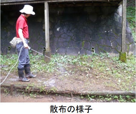 ・10倍希釈で使用。100~200mL/m2(10倍希釈液の場合)散布面が漏れる程度※使用量の調整・・・下記のように条件に応じて希釈倍率や散布量を調整してください。1)地表に落葉や下草が少ない場所では、散布量を減らす。2)降雨や露により地表に水分が多い場合は、希釈倍率を下げて、ディート濃度1%以上とする。