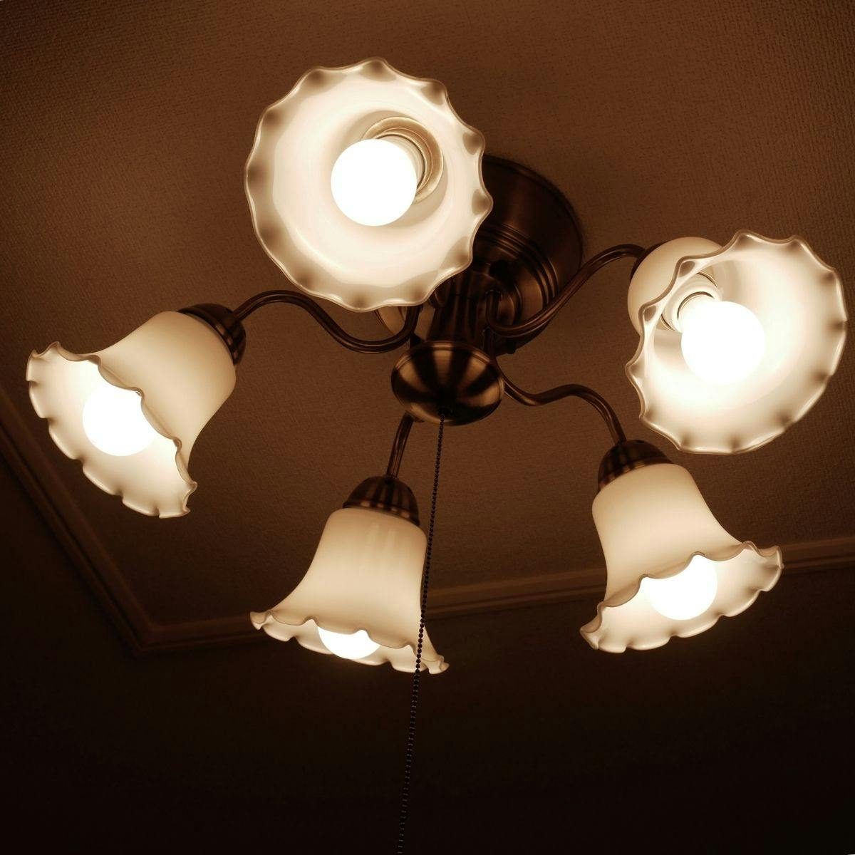 村上工作所 STERN シャンデリア フラワーガラス 5灯 プルスイッチ 電球なし KMS-0006