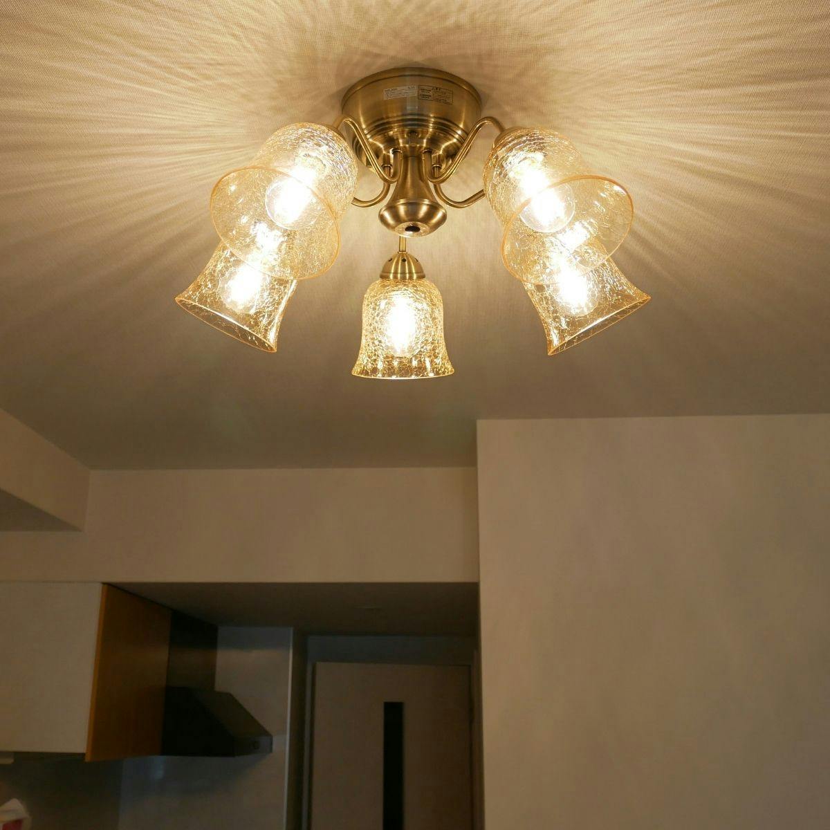 村上工作所 STERN シャンデリア ヒビガラス アンバー 5灯 リモコン 電球なし KMS-2005_AM