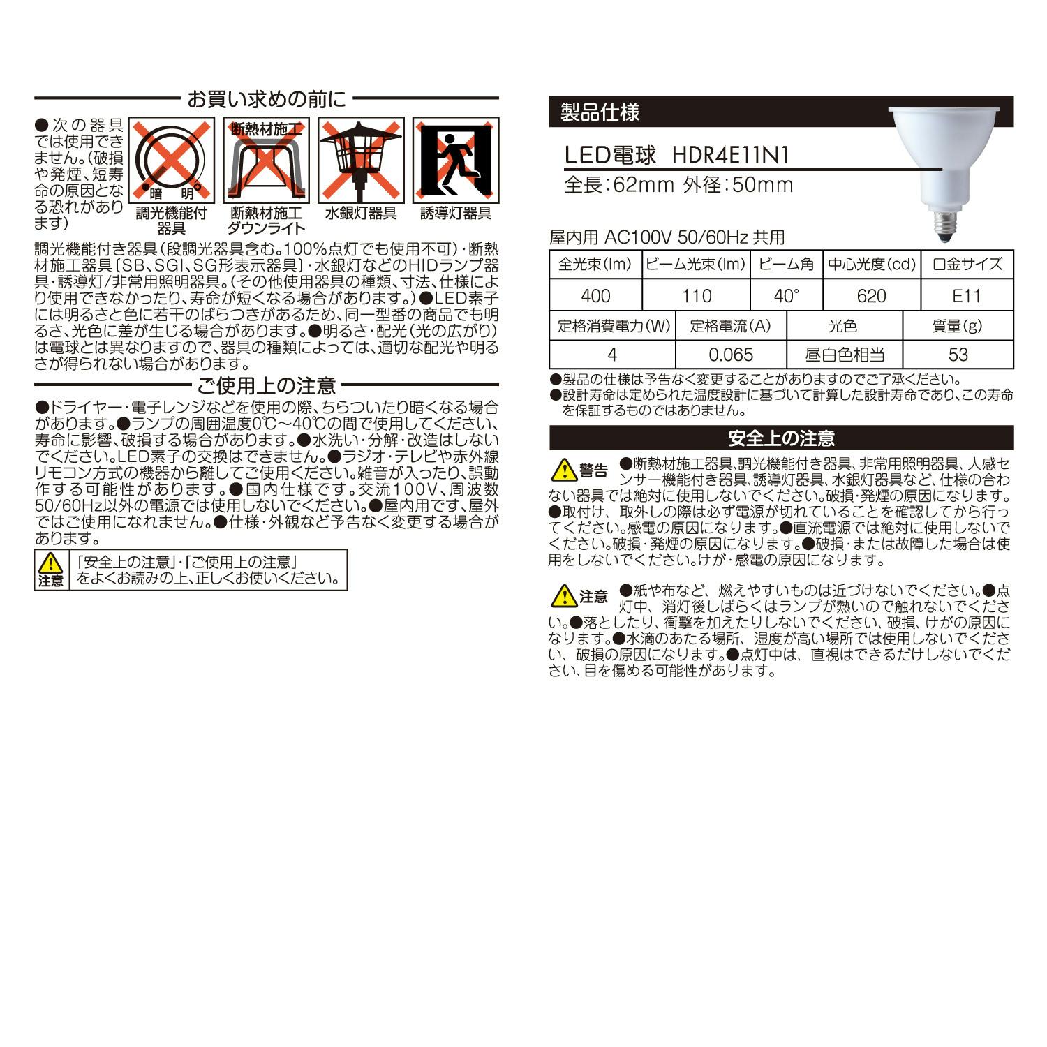 • スタイルド(STYLED) LED電球 ハロゲン形 E11 400lm 昼白色 広角タイプ 密閉器具対応 HDR4E11N1