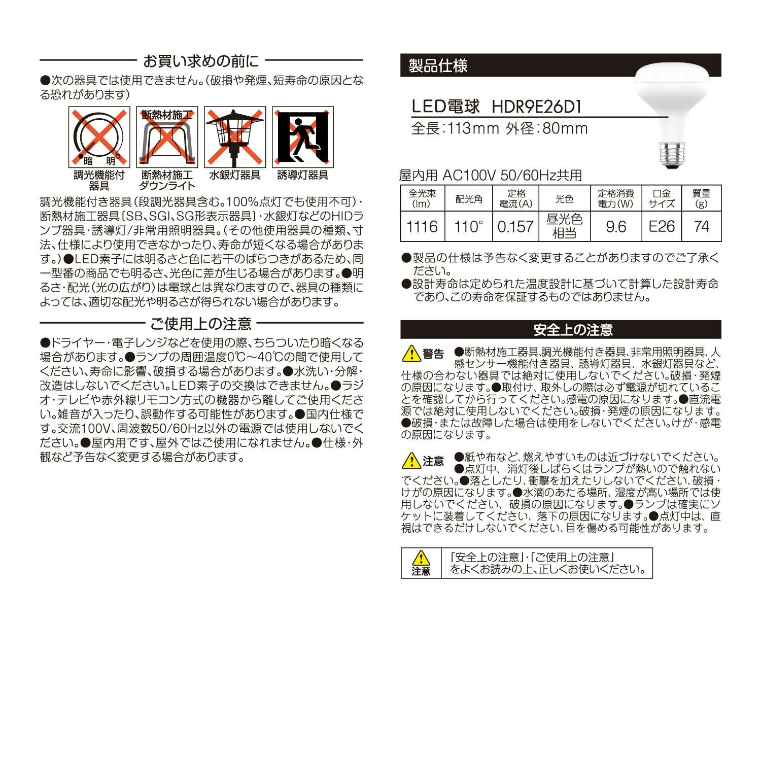スタイルド(STYLED) LED電球 レフ形 E26 100W形相当 昼光色 配光角120度 密閉器具対応 HDR9E26D1