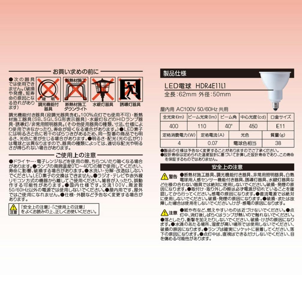スタイルド(STYLED) LED電球 ハロゲン形 E11 400lm 電球色 広角タイプ 密閉器具対応 HDR4E11L1