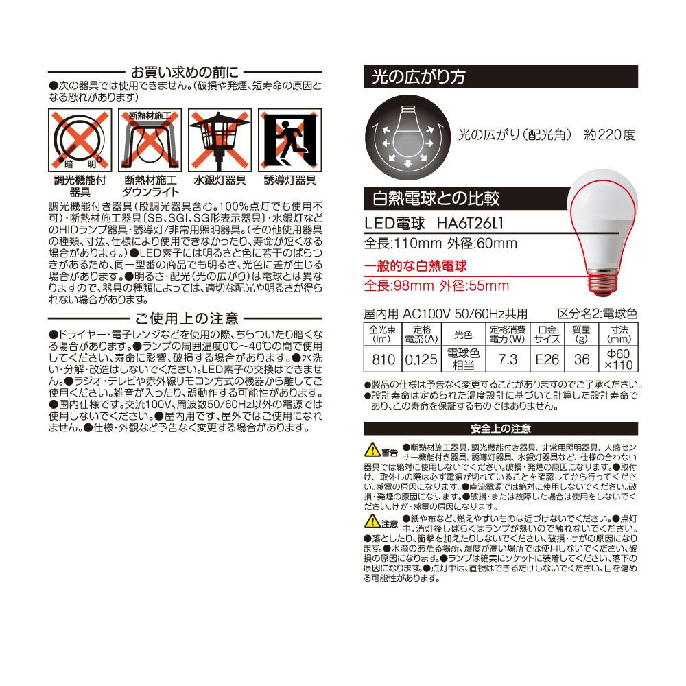 2個セット スタイルド(STYLED) LED電球 E26 60W形相当 電球色 一般電球形 広配光 密閉器具対応 HA6T26L2