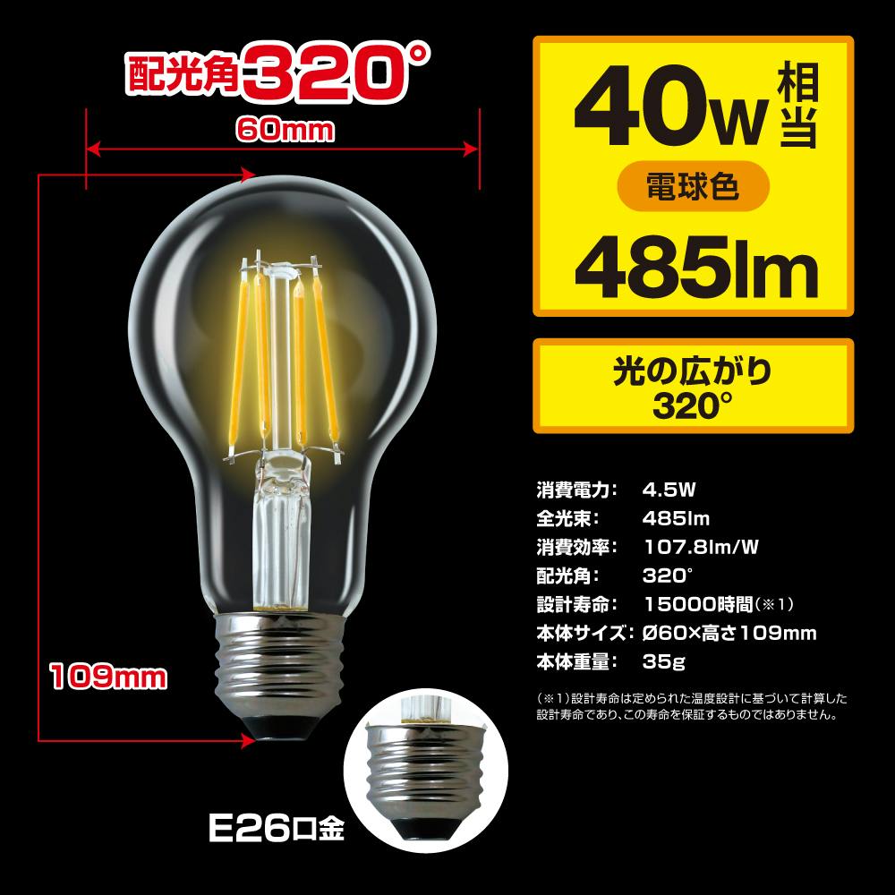 10個セット スタイルド(STYLED) LED電球 クリア電球 E26 40W形相当 電球色 一般電球形 全方向 HDAC40L10