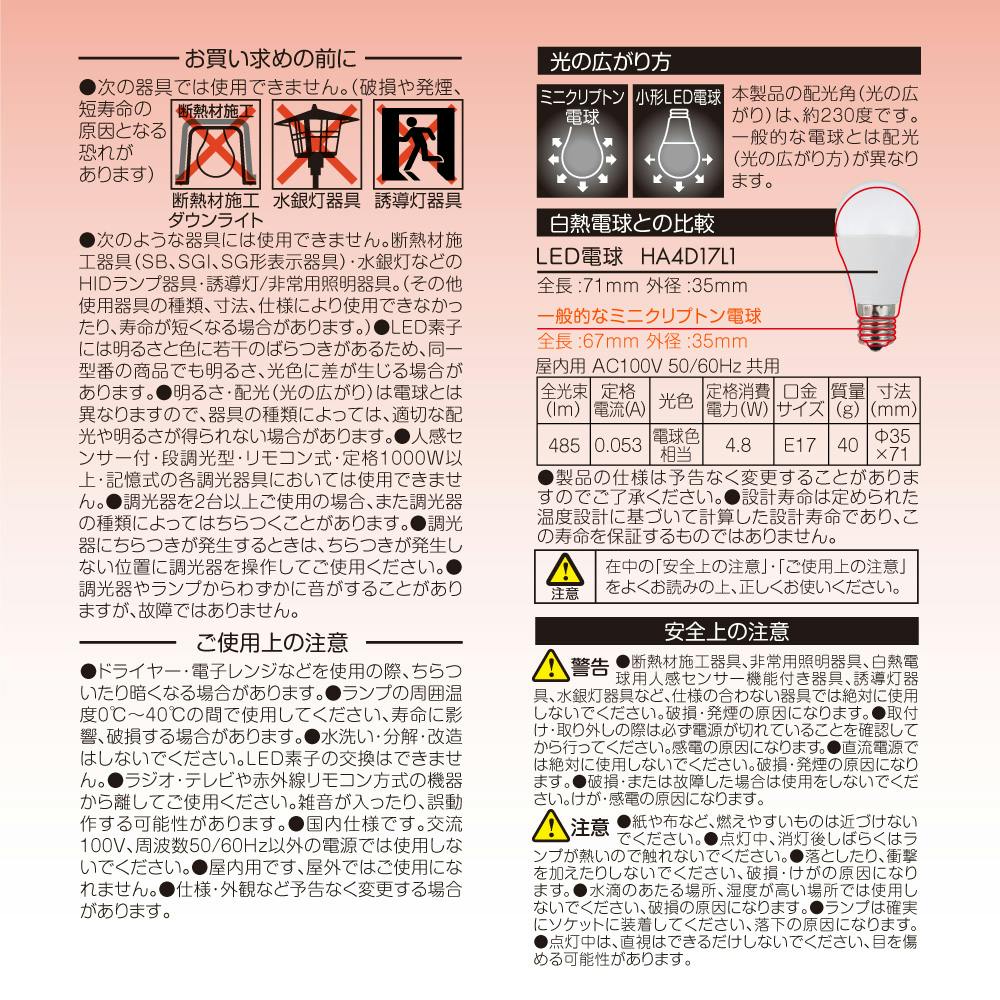 2個セット スタイルド(STYLED) 調光器対応 LED電球 E17 40W形相当 電球色 小形電球 広配光 密閉器具対応 HA4D17L2