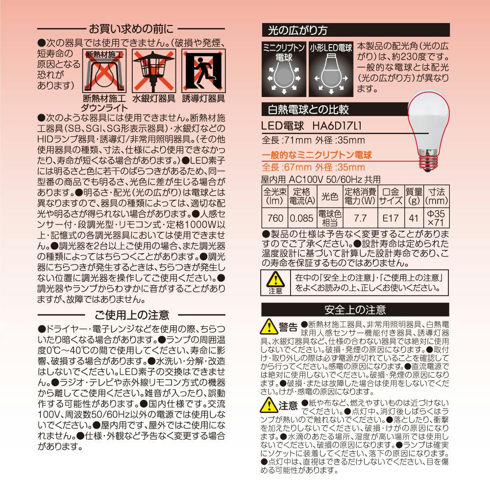 2個セット スタイルド(STYLED) 調光器対応 LED電球 E17 60W形相当 電球色 小形電球 広配光 密閉器具対応 HA6D17L2