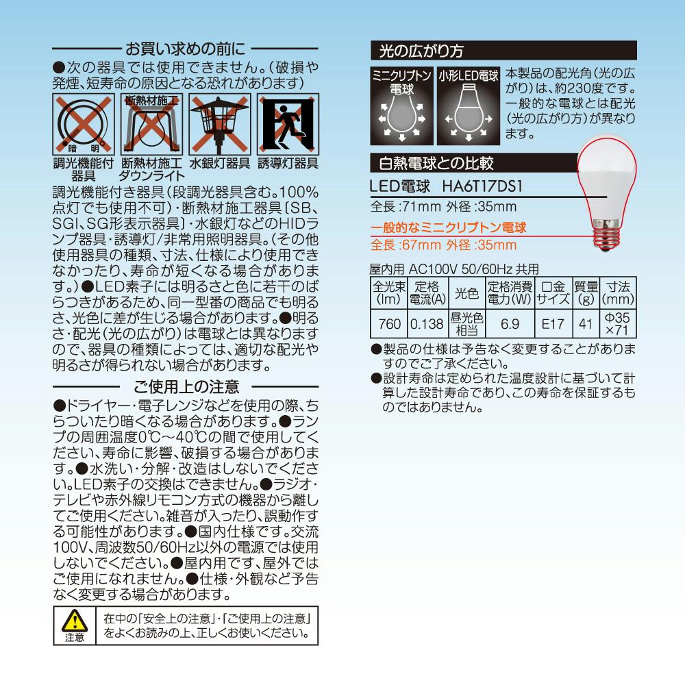 スタイルド(STYLED) LED電球 E17 60W形相当 昼光色 小形電球 広配光 密閉器具対応 HA6T17DS1