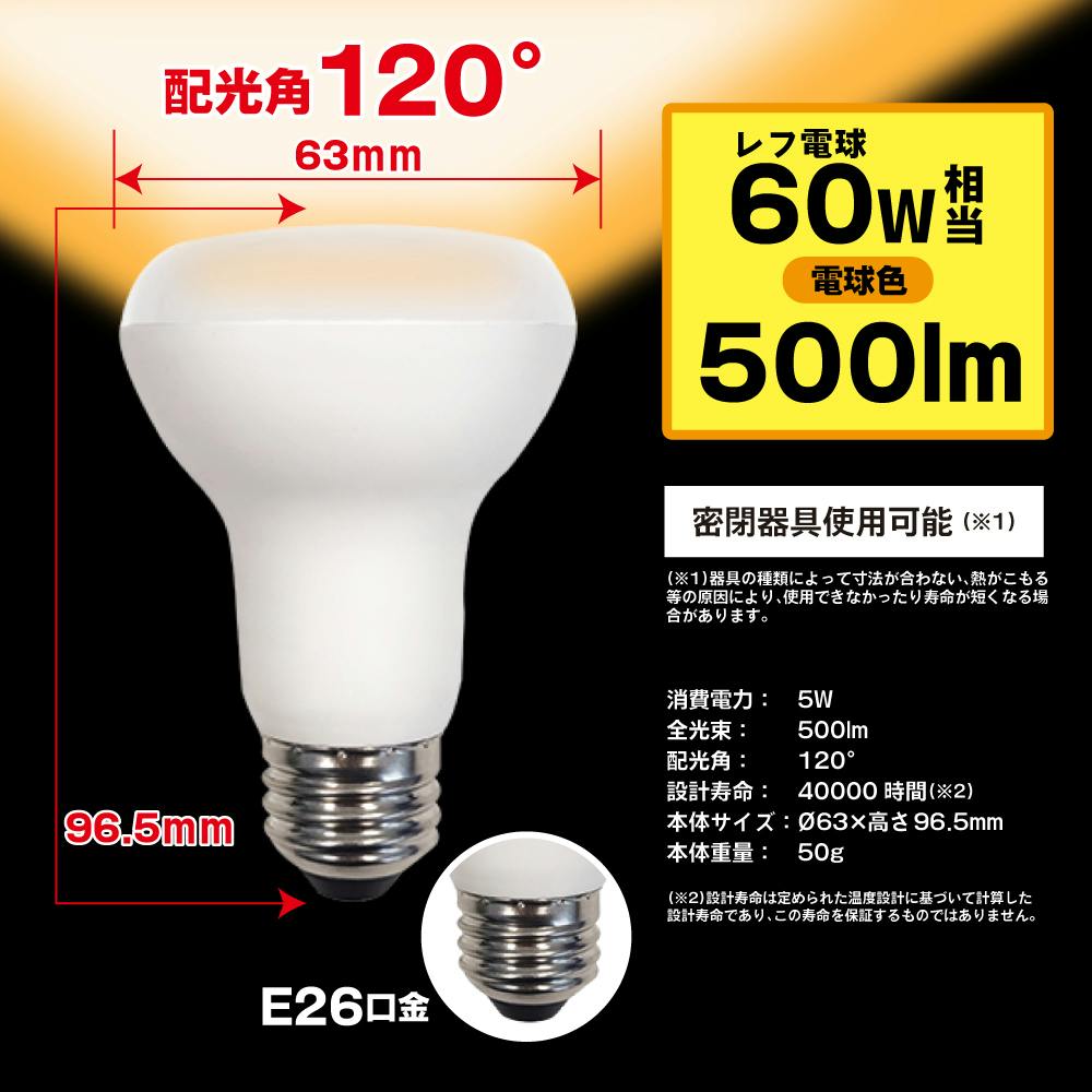 10個セット スタイルド(STYLED) LED電球 レフ形 E26 60W形相当 電球色 配光角120度 密閉器具対応 HDR6E26L10