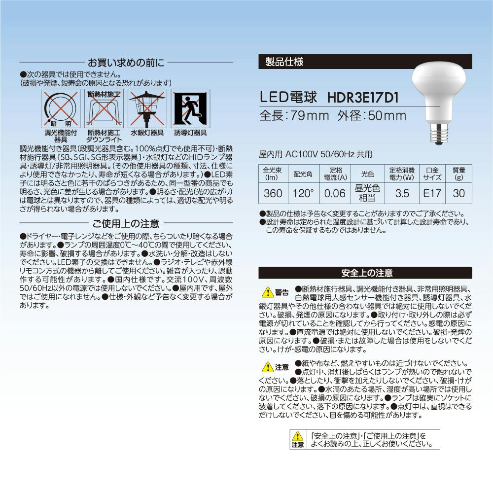 スタイルド(STYLED) LED電球 レフ形 E17 40W形相当 昼光色 配光角120度 密閉器具対応 密閉器具対応 HDR3E17D1