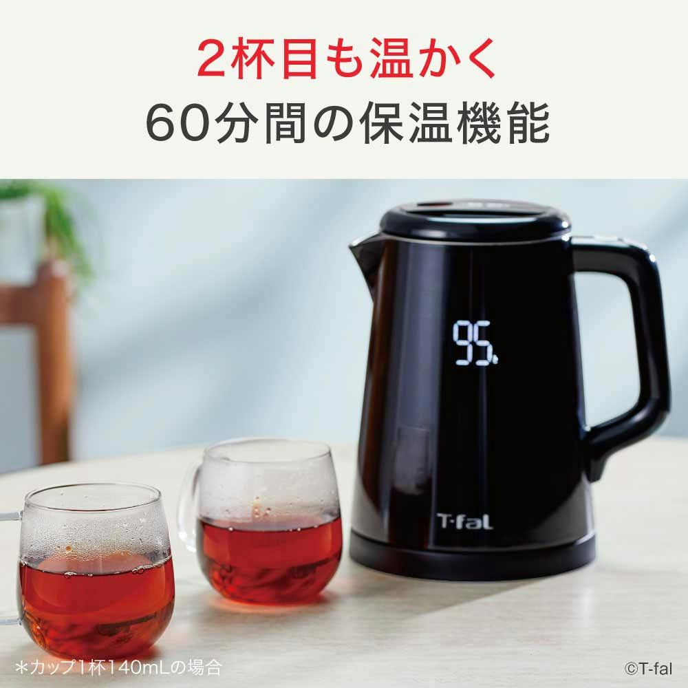 ティファール 電気ケトル 温度調節 保温機能付き ディスプレイ ロック コントロール 0.8L T-fal ブラック KO8568JP【ケトル 電気 湯沸かしポット 温度調節機能付き 1250W ハイパワー キッチン家電】