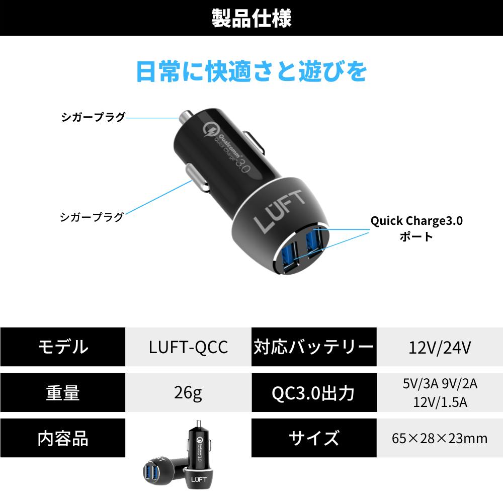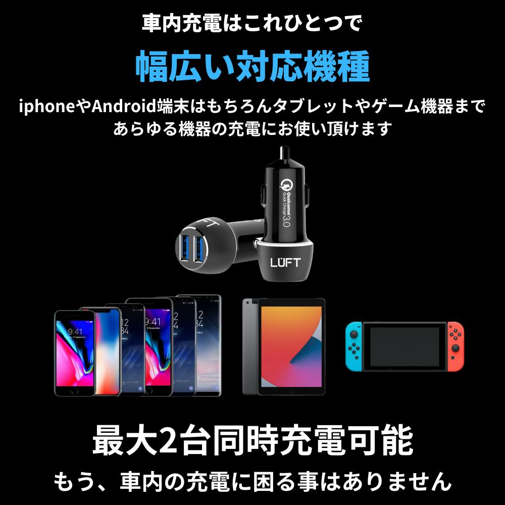 LUFT ルフト シガーソケット USB カーチャージャー ブラック 黒 2ポート付き 急速充電 車載充電器