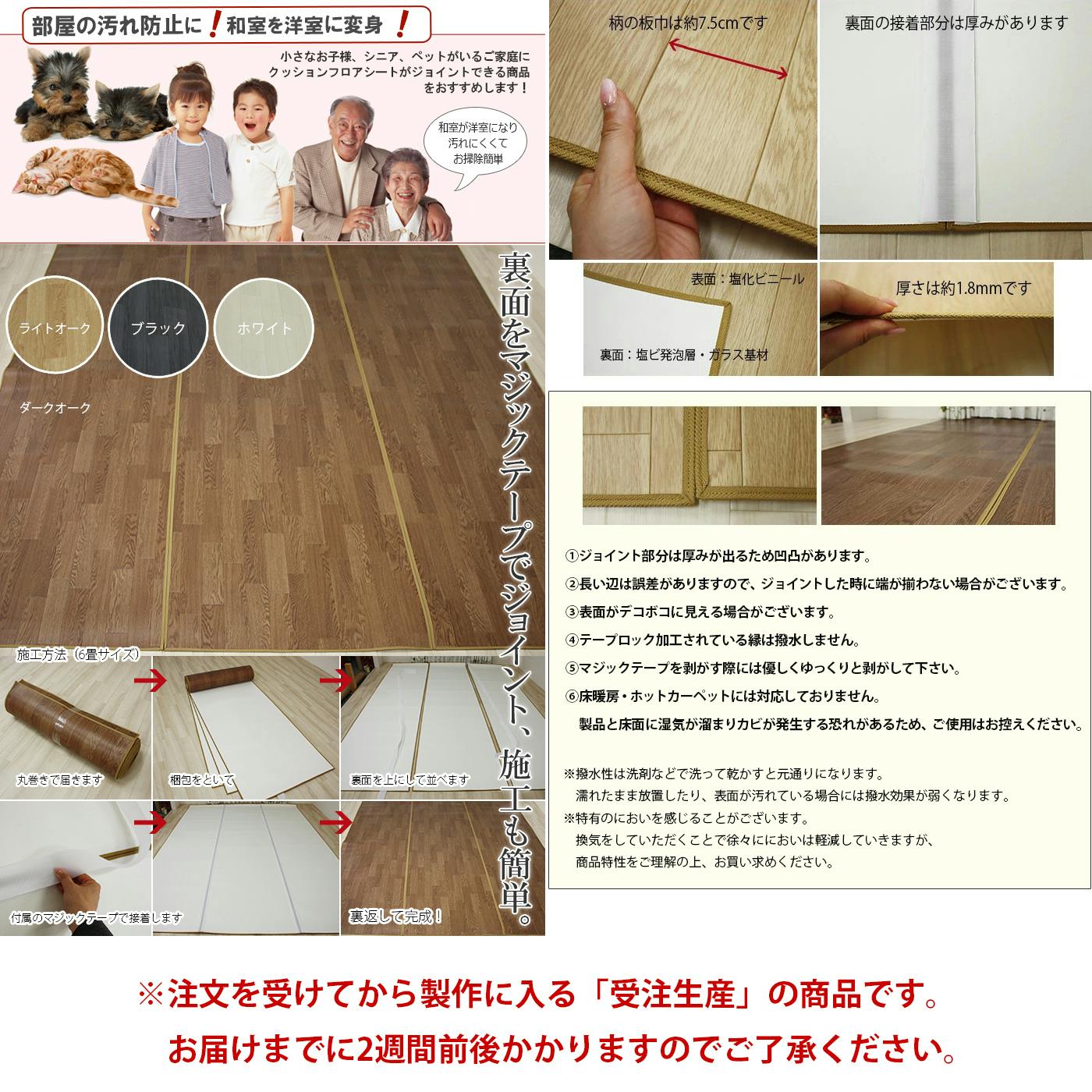 インテリアショップゆうあい ジョイント式 ダイニングラグ 防炎 撥水・抗菌加工 汚れを防止する joint-cfmat8 (SL) 8畳 (ブラック) ウッド調 クッションフロア 介護用シート ペット用シート
