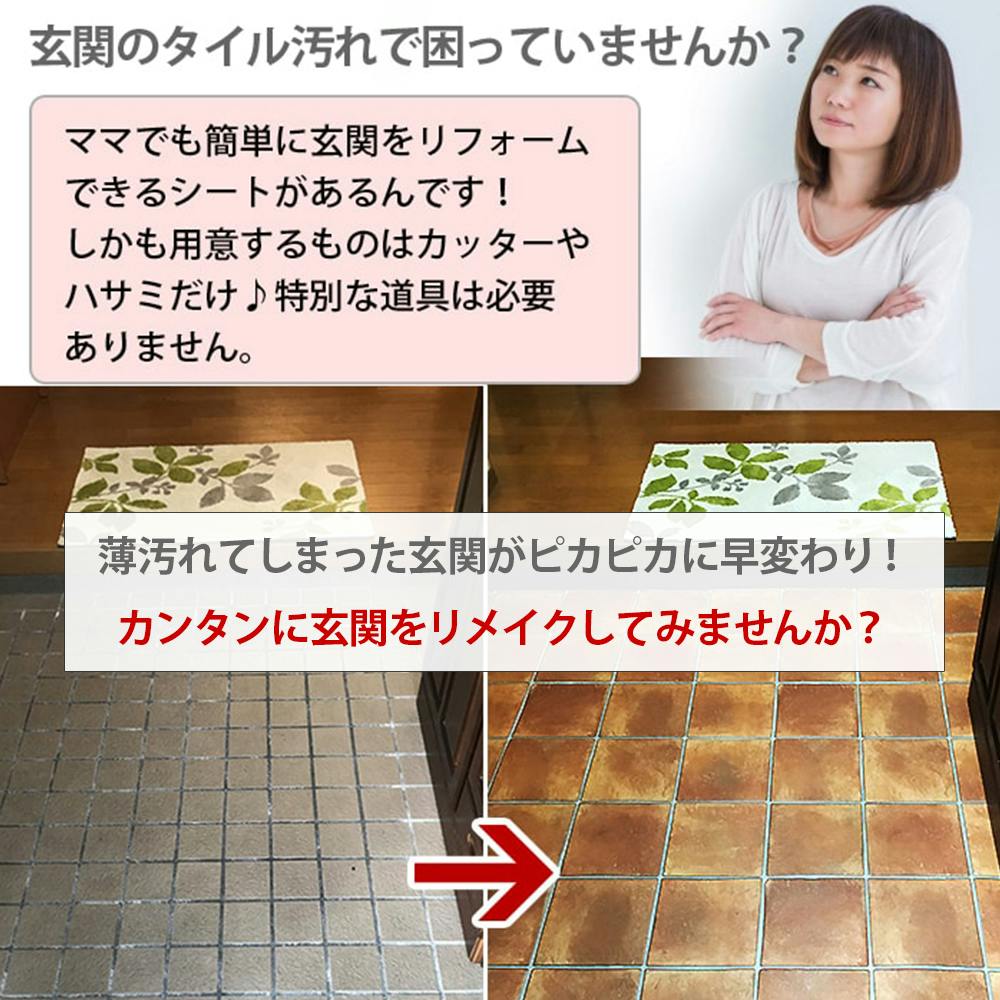 お手入れ簡単な玄関へ★リメイクシートセット♪裏面は付属の粘着テープを使って貼り付けます。特別な道具が不要なので、DIYはじめての方でも簡単に玄関をリフォームできます!