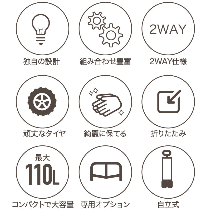 • ライシン アウトドアワゴン Eシリーズ ミニ ブラウン 最大110L 拡張機能 キャリーワゴン キャリーカート 折りたたみ フォールディング アウトドアワゴン キャンプ 運動会 バーベキュー BBQ ピクニック レジャー 自立 丈夫 頑丈 軽量 コンパクト 収納 荷物 運ぶ 運搬 台車 茶色