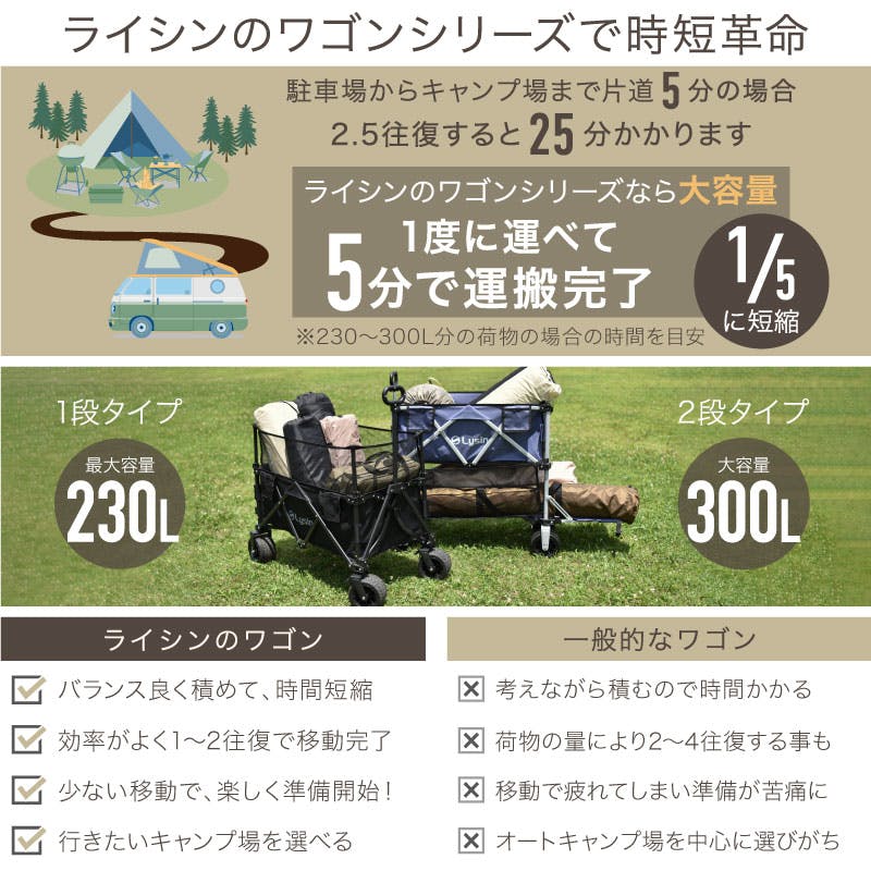 ライシン アウトドアワゴン Eシリーズ 1段 ブラウン 最大230L 拡張機能 キャリーワゴン キャリーカート 大容量 折りたたみ フォールディング アウトドアワゴン キャンプ 運動会 バーベキュー BBQ ピクニック レジャー 自立 丈夫 頑丈 軽量 コンパクト 収納 荷物 運ぶ 運搬 茶色