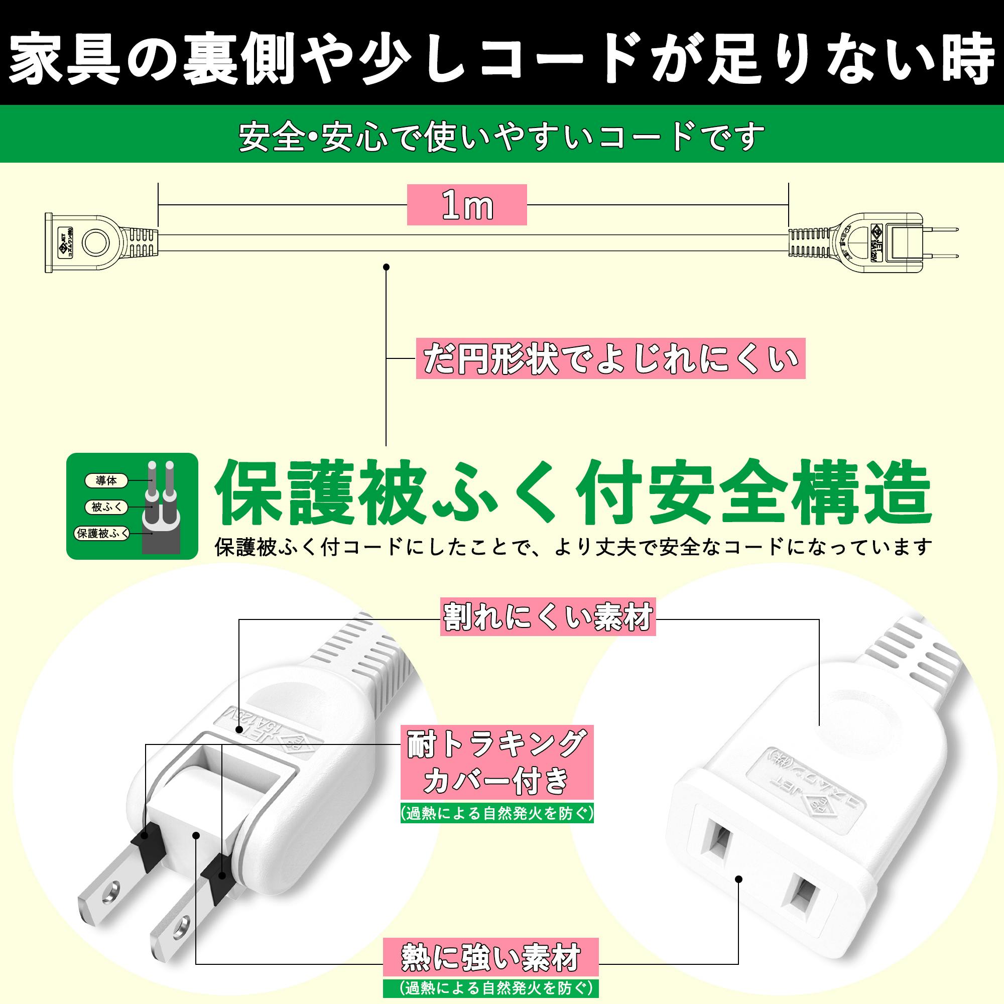 KOZUMUWAN 延長コード 電源タップ 1m 断線に強い 180度回転プラグ すっきり配線 15A 1500W 耐寒 耐熱 トラッキング 火災予防 絶縁カバー 延長ケーブル スイングプラグ 電源増設 RoHS指令対応 省スペース ホワイト (3本入り)