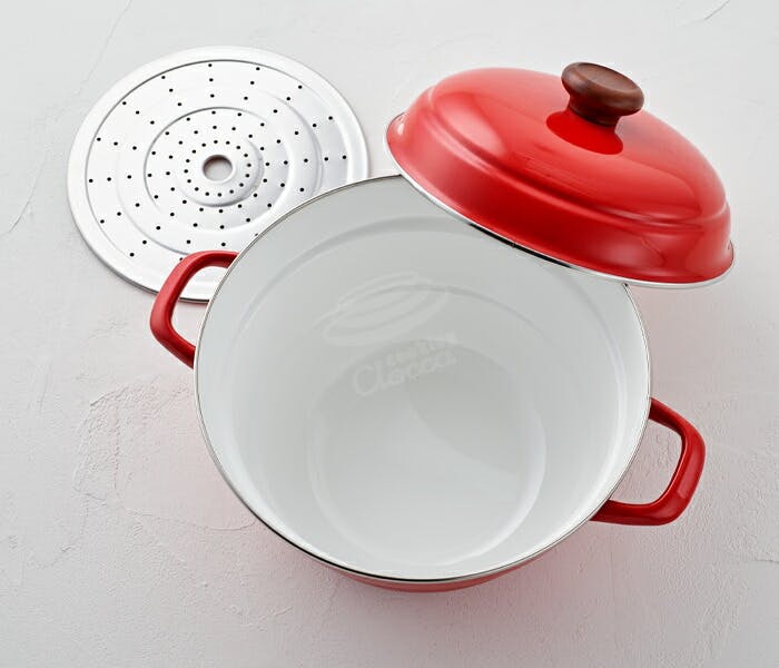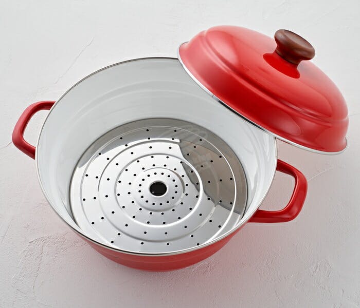 本体:ほうろう用鋼板、フタつまみ:木製、スノコ:ステンレス