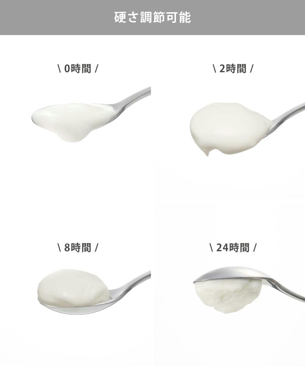 市販のヨーグルトをポンと入れるだけで、簡単に水切りヨーグルトが作れます。ペーパーフィルターは不要です。 丸ごと1パック分のヨーグルトの水切りが一度にできるサイズ。最大500gまで入ります。 水切り時間で固さの調節ができます。ヨーグルトの硬さを調節すればレシピがぐっと広がります。