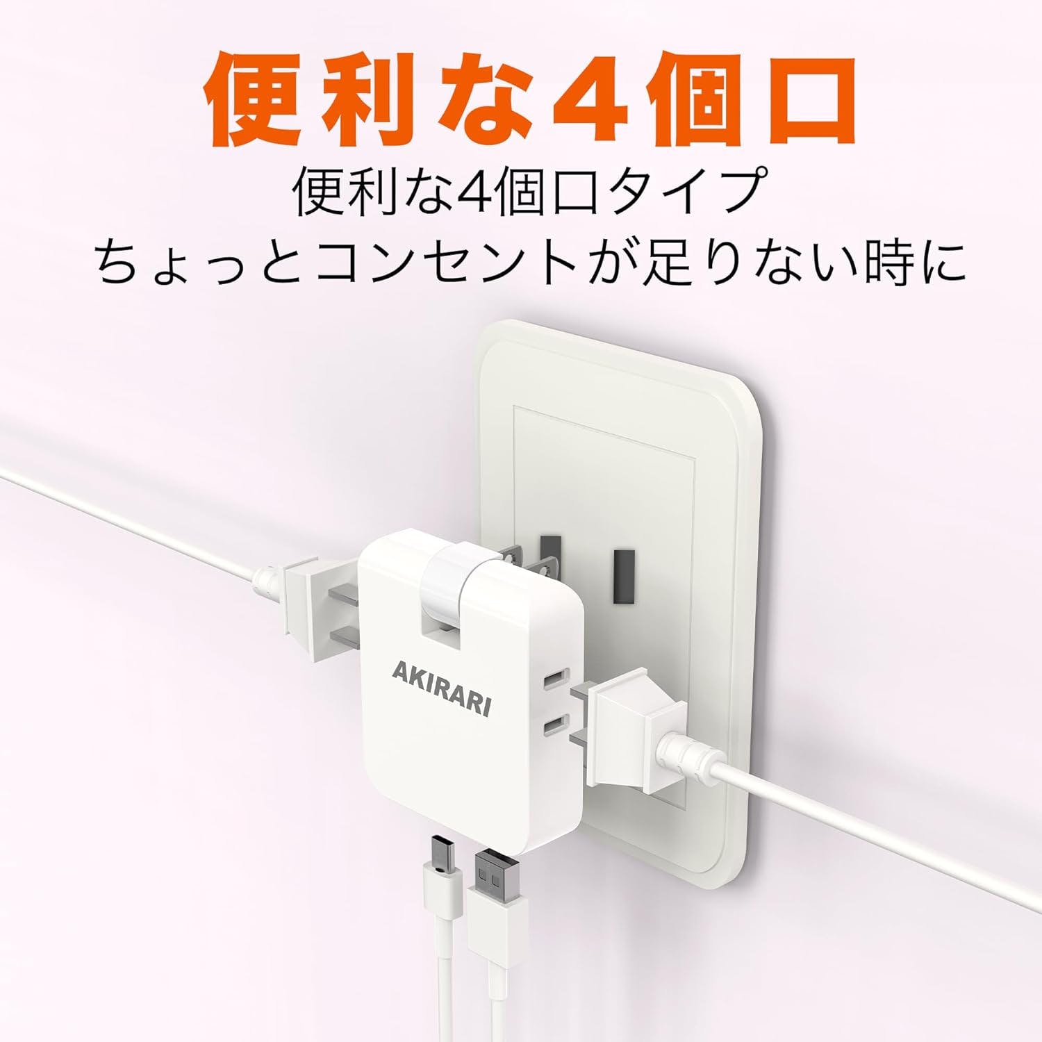 • KOZUMUWAN コーナータップ 4個口 AC2個 USB-A1個 TYPE-C1個 電源タップ USB付き 薄型 スイングプラグ 配線しやすい コンセント 平トリプルタップ すき間コンセントタップ 分岐 PSE認定 mini型電源タップ PD20W 急速充電