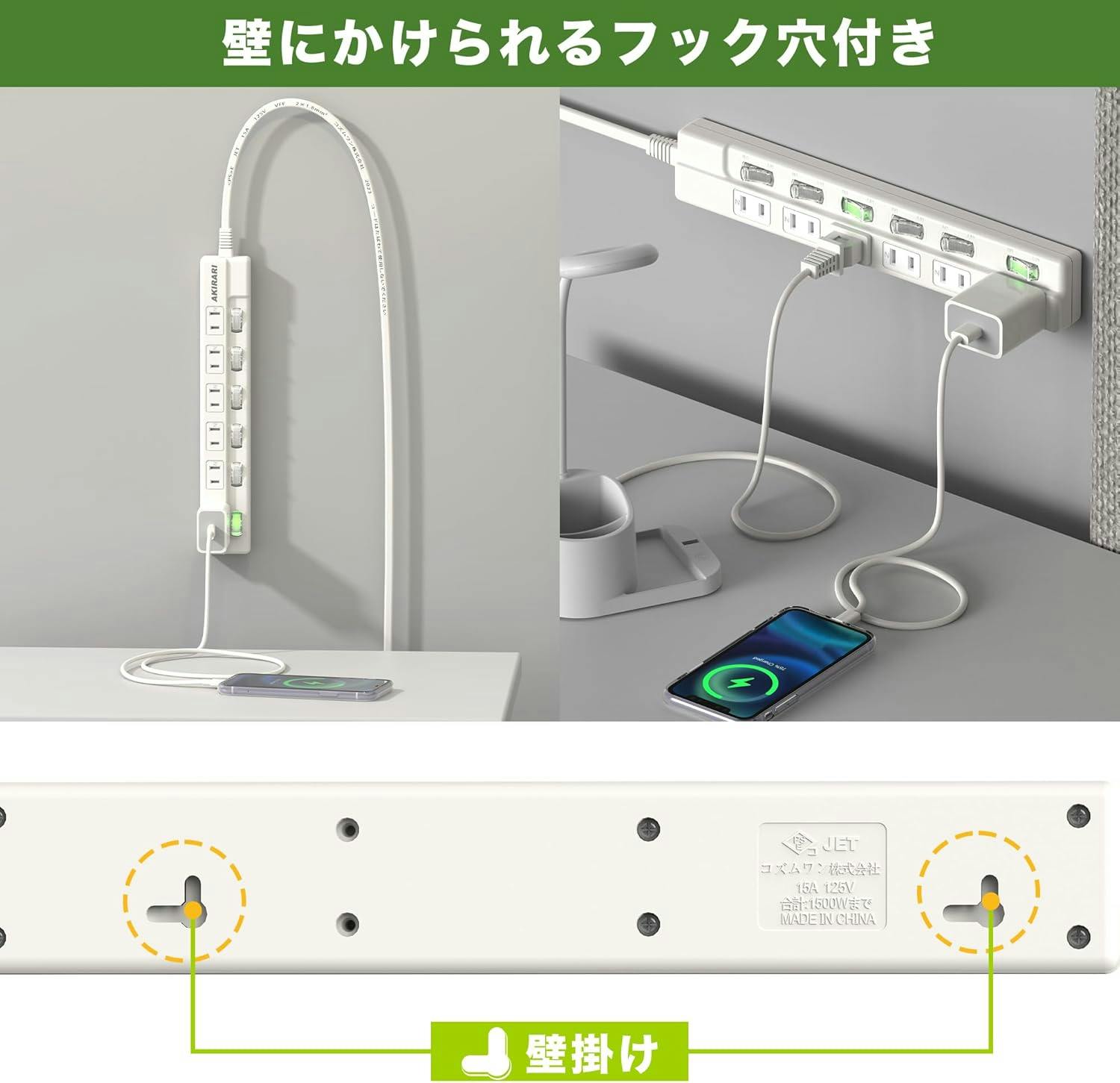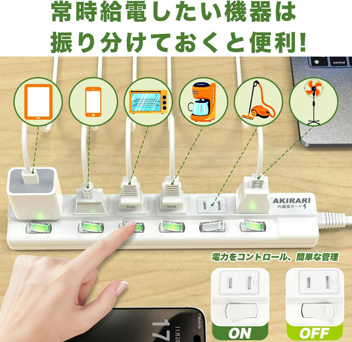KOZUMUWAN 電源タップ 延長コード 3m ホワイト 個別スイッチ 6個口 雷ガード ほこりシャッター 火災予防安全 コンセントタップ スイッチ電源タップ テーブルタップ 過電流 過熱保護 180度スイングプラグ トラッキング防止 壁 卓上