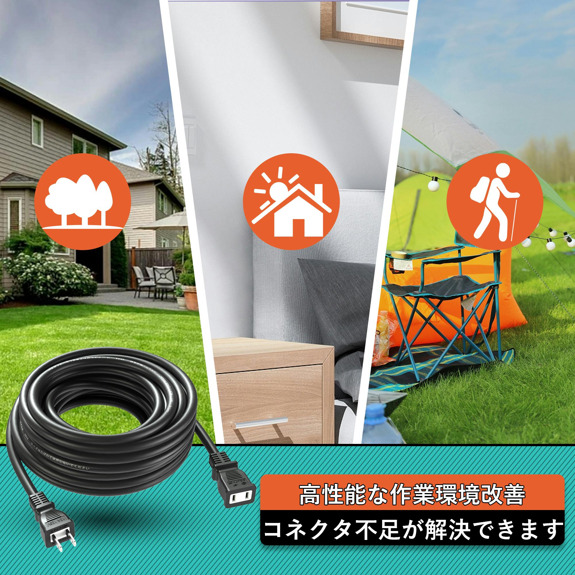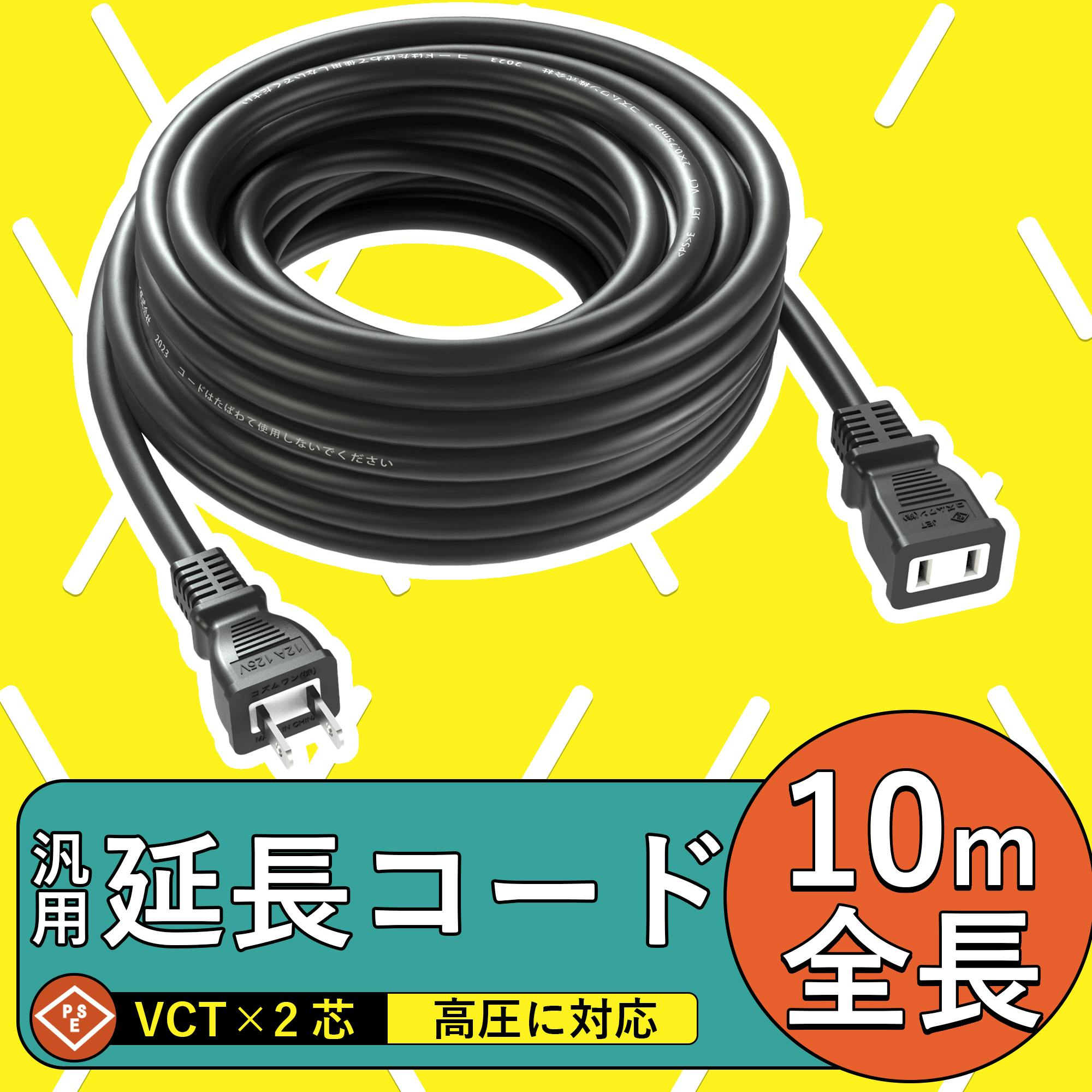 KOZUMUWAN 延長コード 10m 延長ケーブル 連結可 電源ケーブル 電源コード 電源 分配コード 延長電源 電源増設 PSE 2芯 二重被覆 作業用 ソフトタイプ ブラック 耐寒 耐熱 耐摩耗 防塵 便利 コンパクト 高圧変圧 トラッキング防止 PSE認証 (10M)