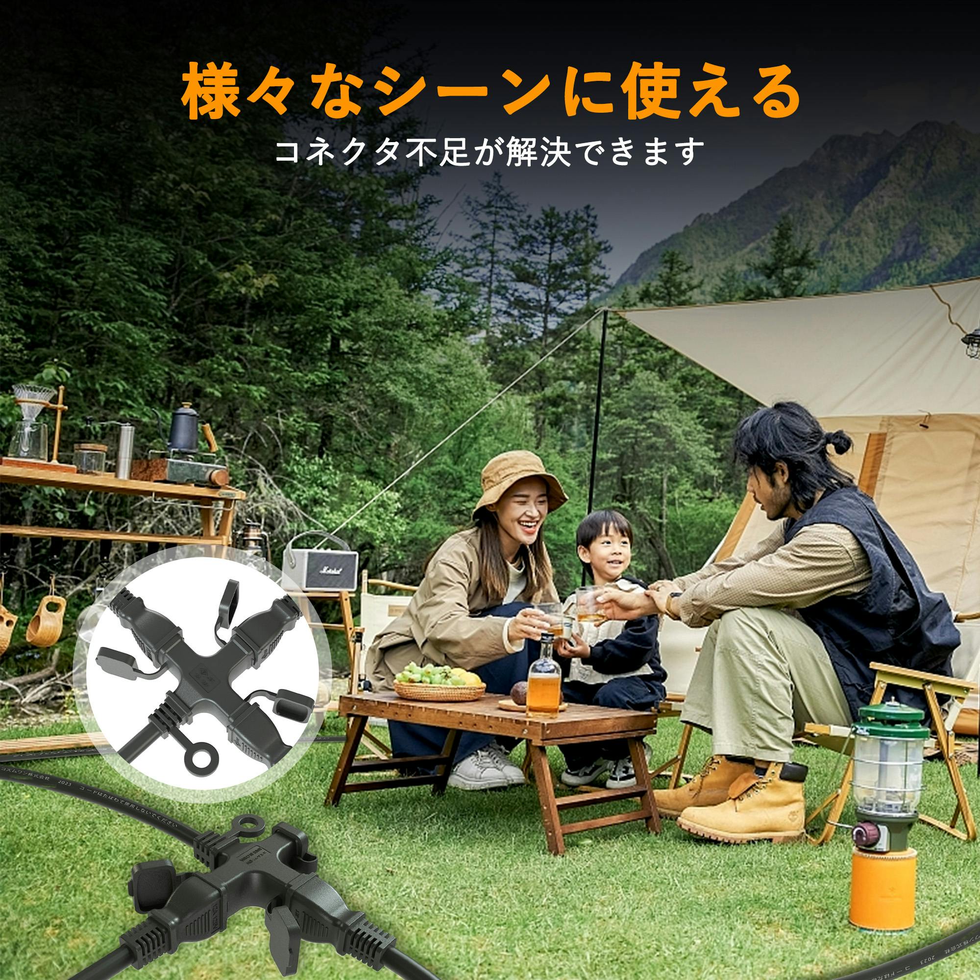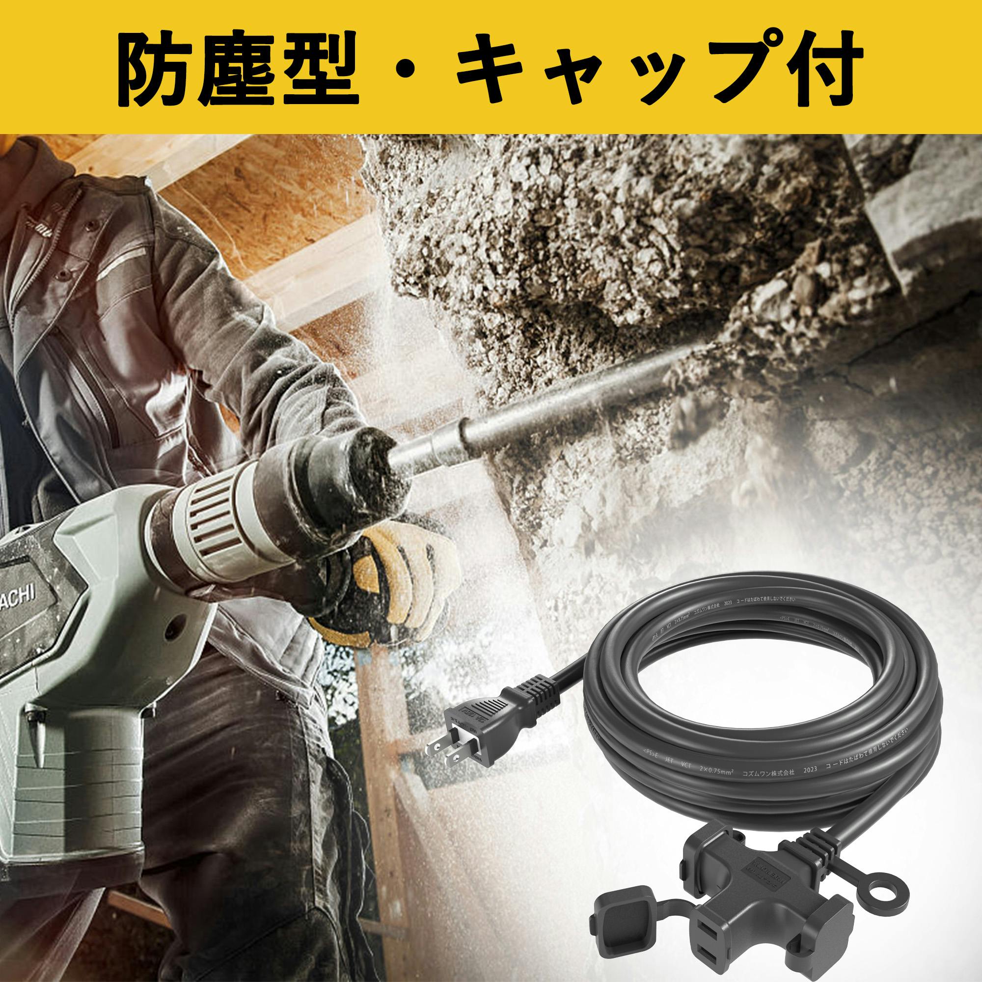 KOZUMUWAN 延長コード 5m 延長ケーブル 連結可 電源ケーブル 電源コード 電源 分配コード 3分配 3個口 延長電源 電源増設 PSE 2芯 二重被覆 作業用 ソフトタイプ ブラック 耐寒 耐熱 耐摩耗 防塵 便利 コンパクト トラッキング防止 PSE認証