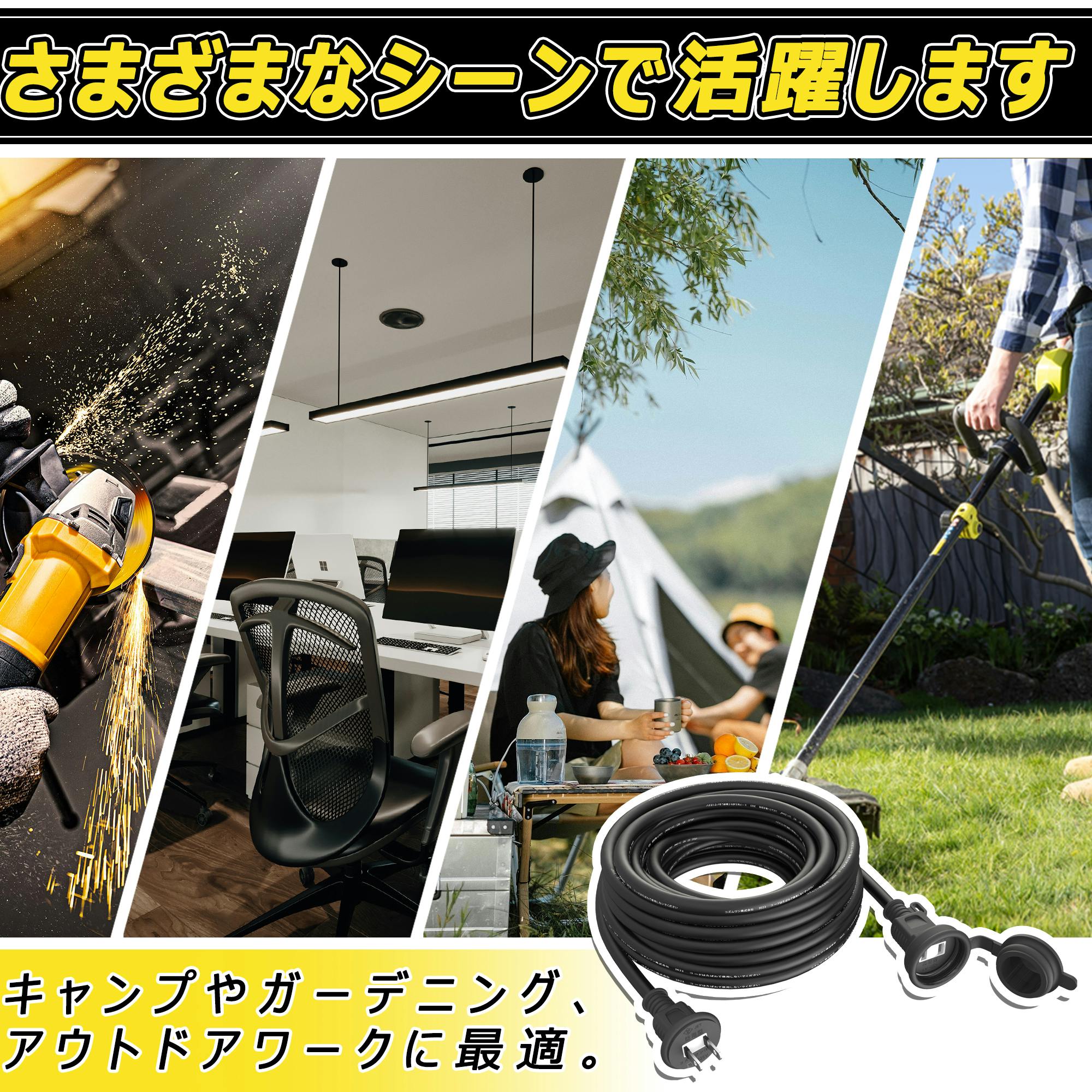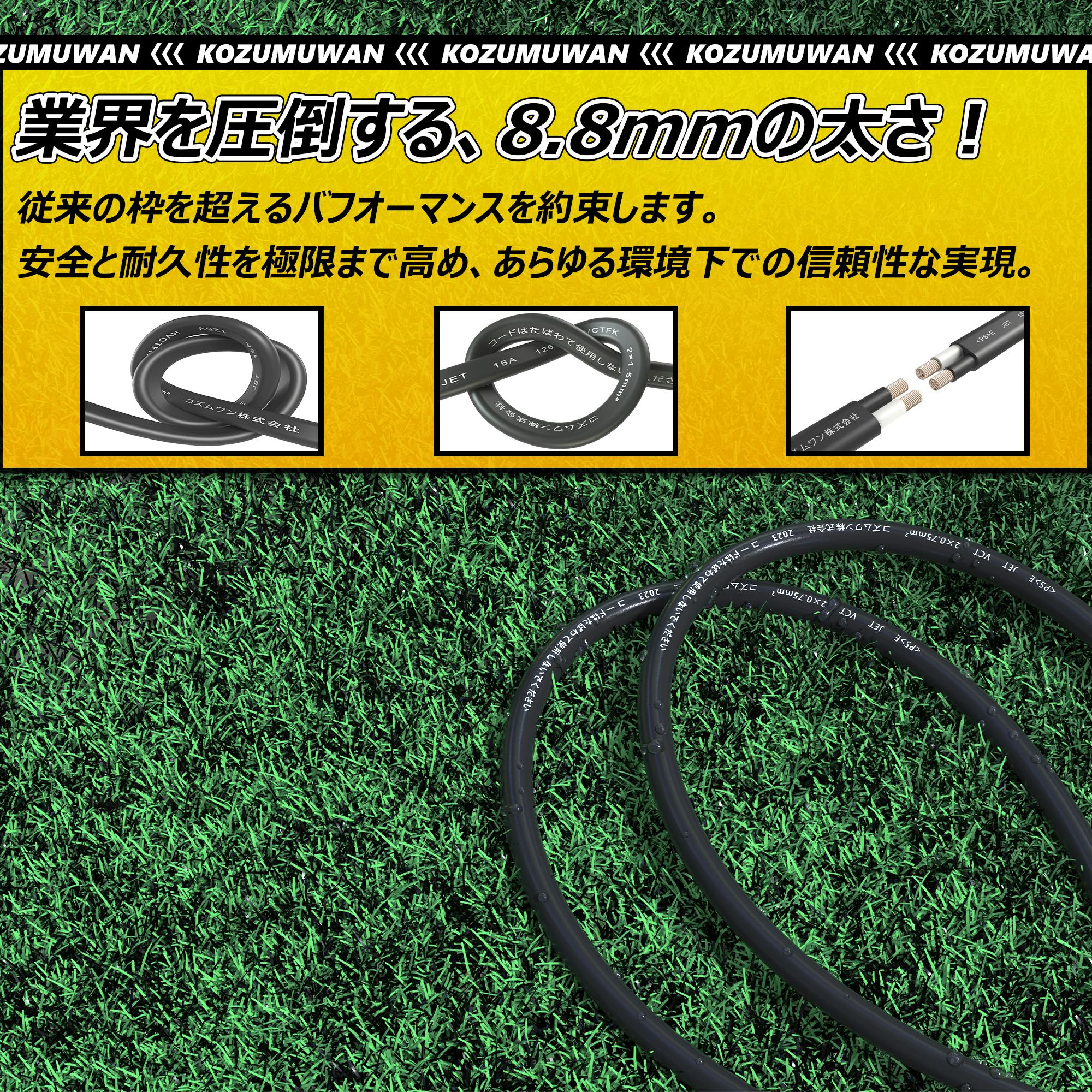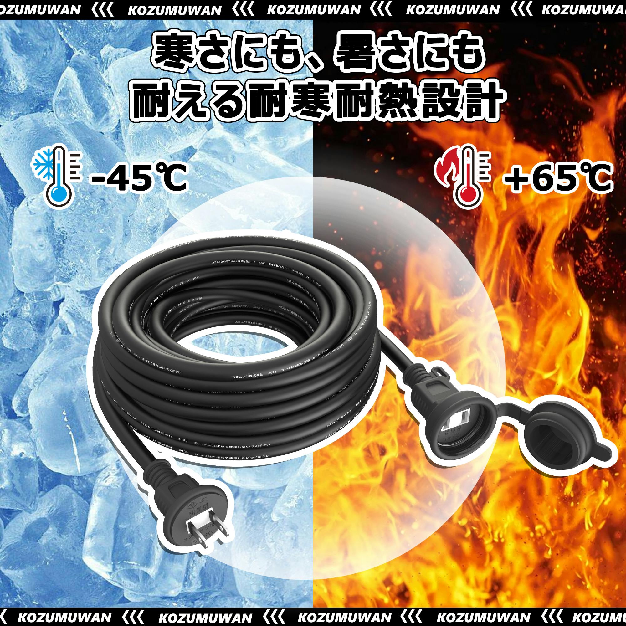KOZUMUWAN 電源コード 延長コード 10m 延長ケーブル 防雨 防水型 分配コード コンセント 電源増設 室内延長コード 室外 ブラック 耐熱延長コード 二重被覆 コード安全 PSE認証 ソフト 便利 コンパクト DIY延長コード 延長電源コード LED イルミネーション用