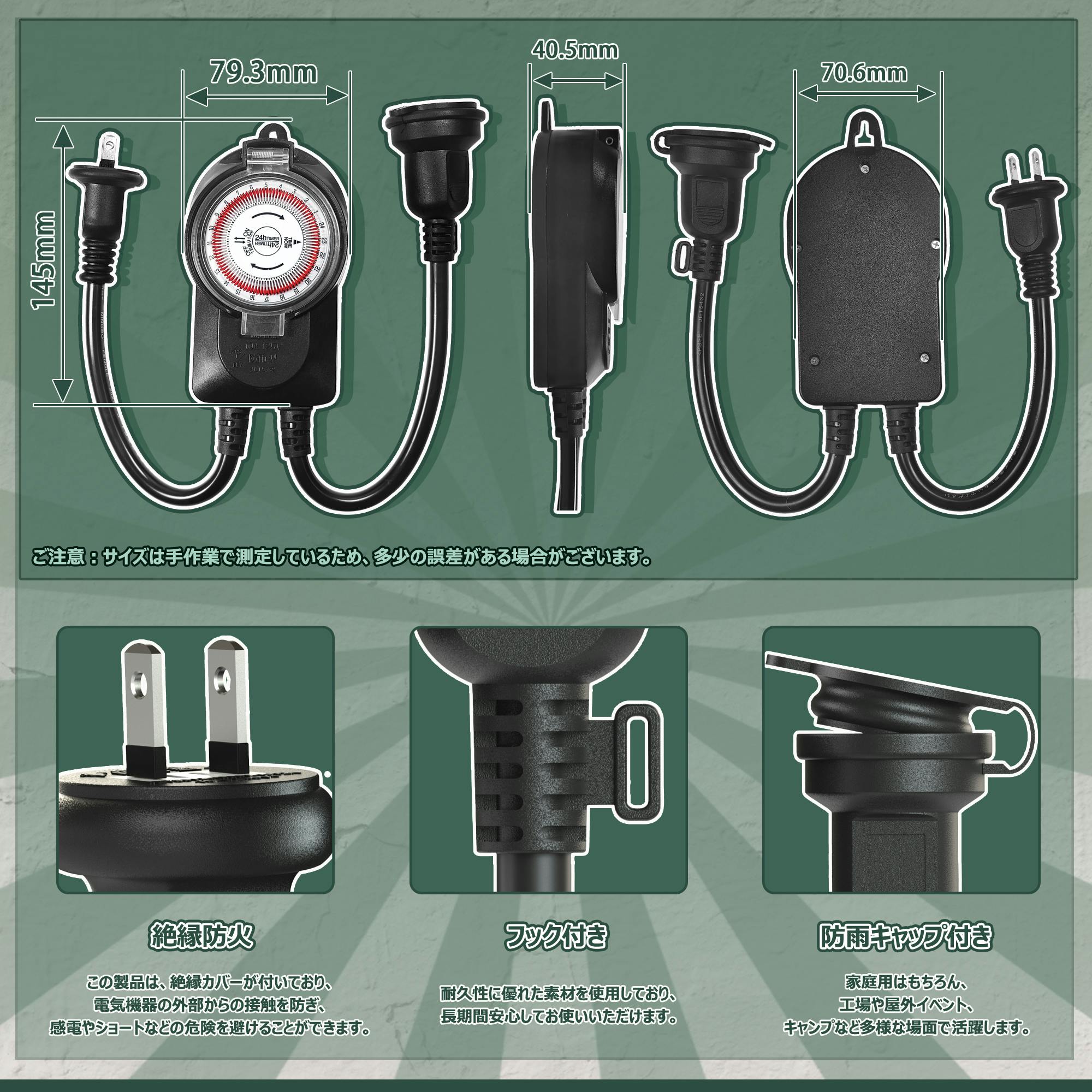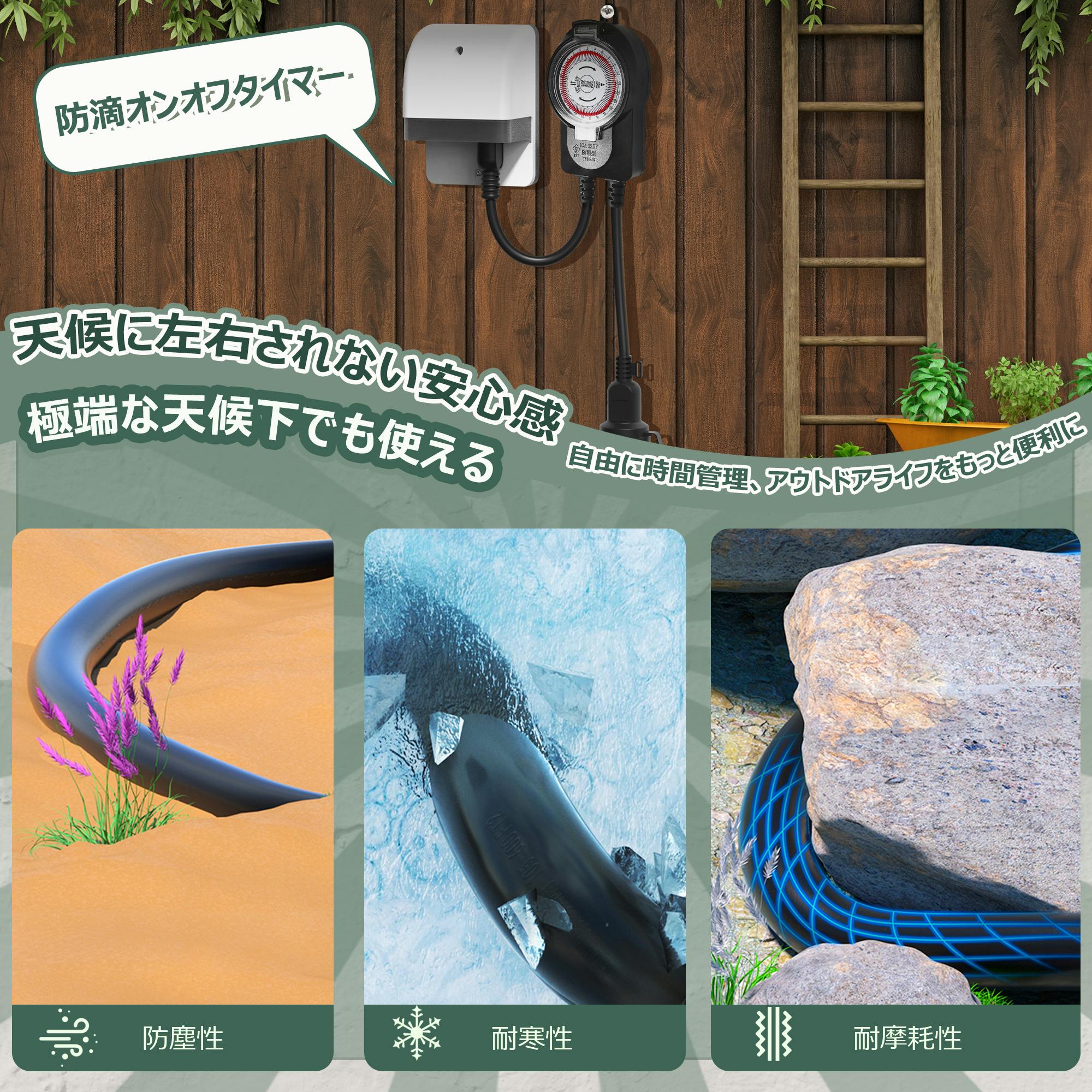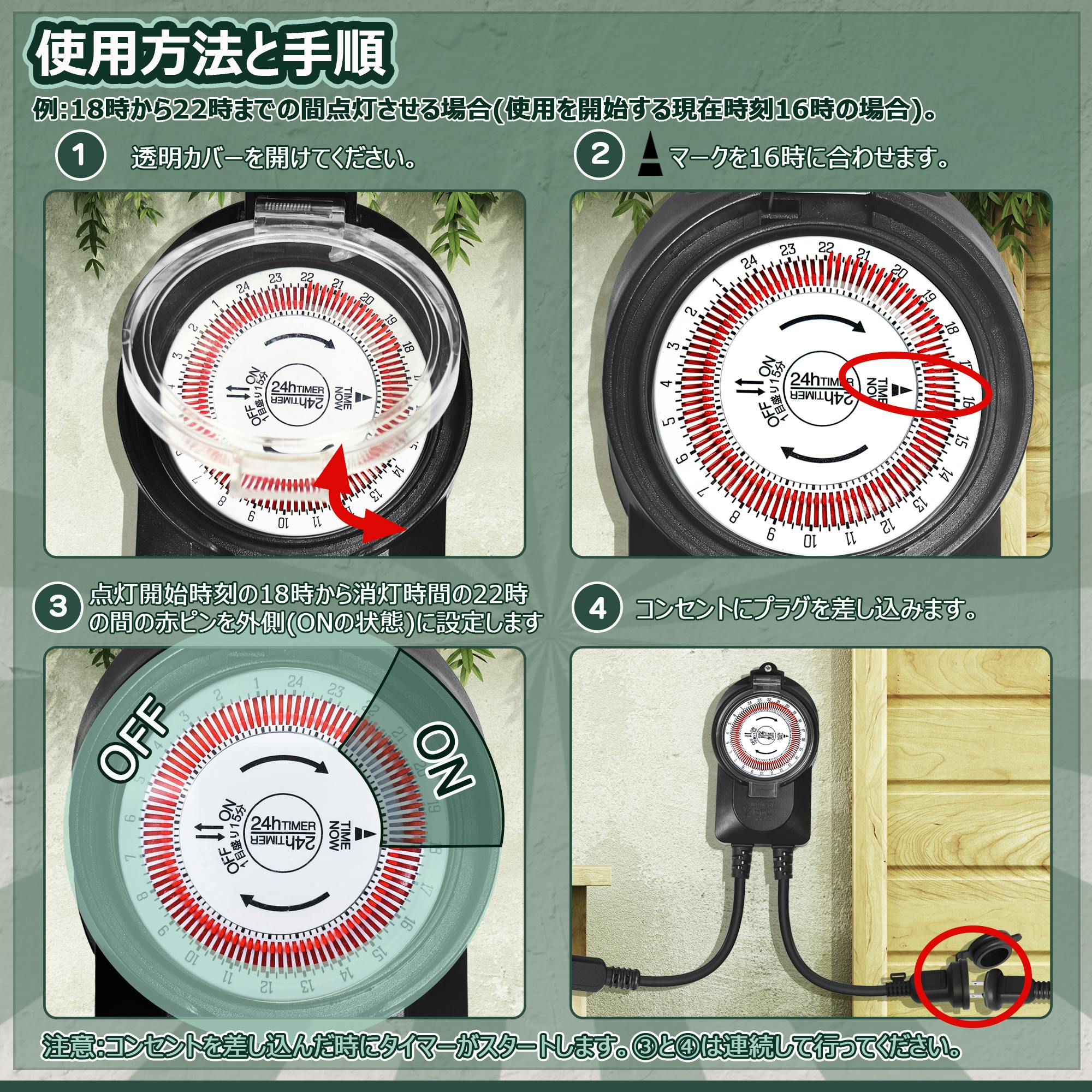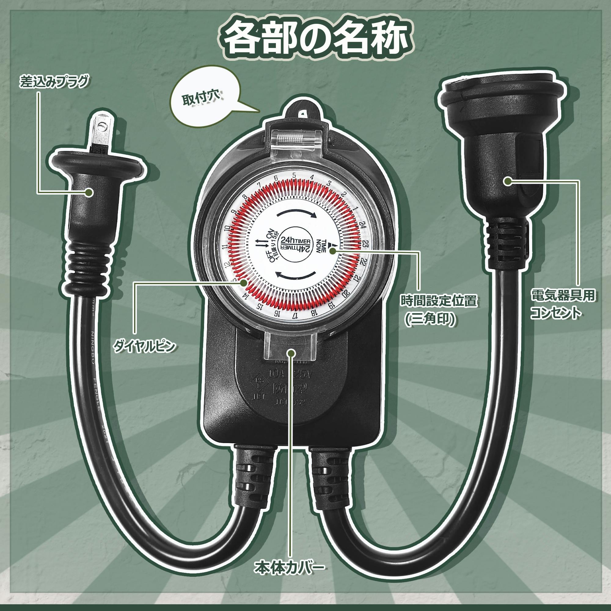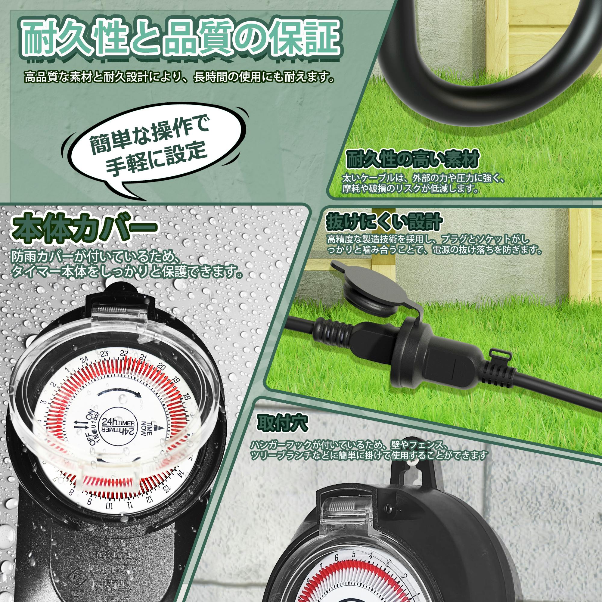 KOZUMUWAN タイマー 屋外用防雨タイマー タイマーコンセント 24時間 15分単位 1500W 屋外用 防雨キャップ付 消灯時間設定 毎日繰り返し 自動点灯 イルミネーション クリスマス 装飾灯 ガーデンライト 玄関灯 防犯灯 照明器具 作業用 電源オンオフ 自動 操作簡単 節電対策 便利性