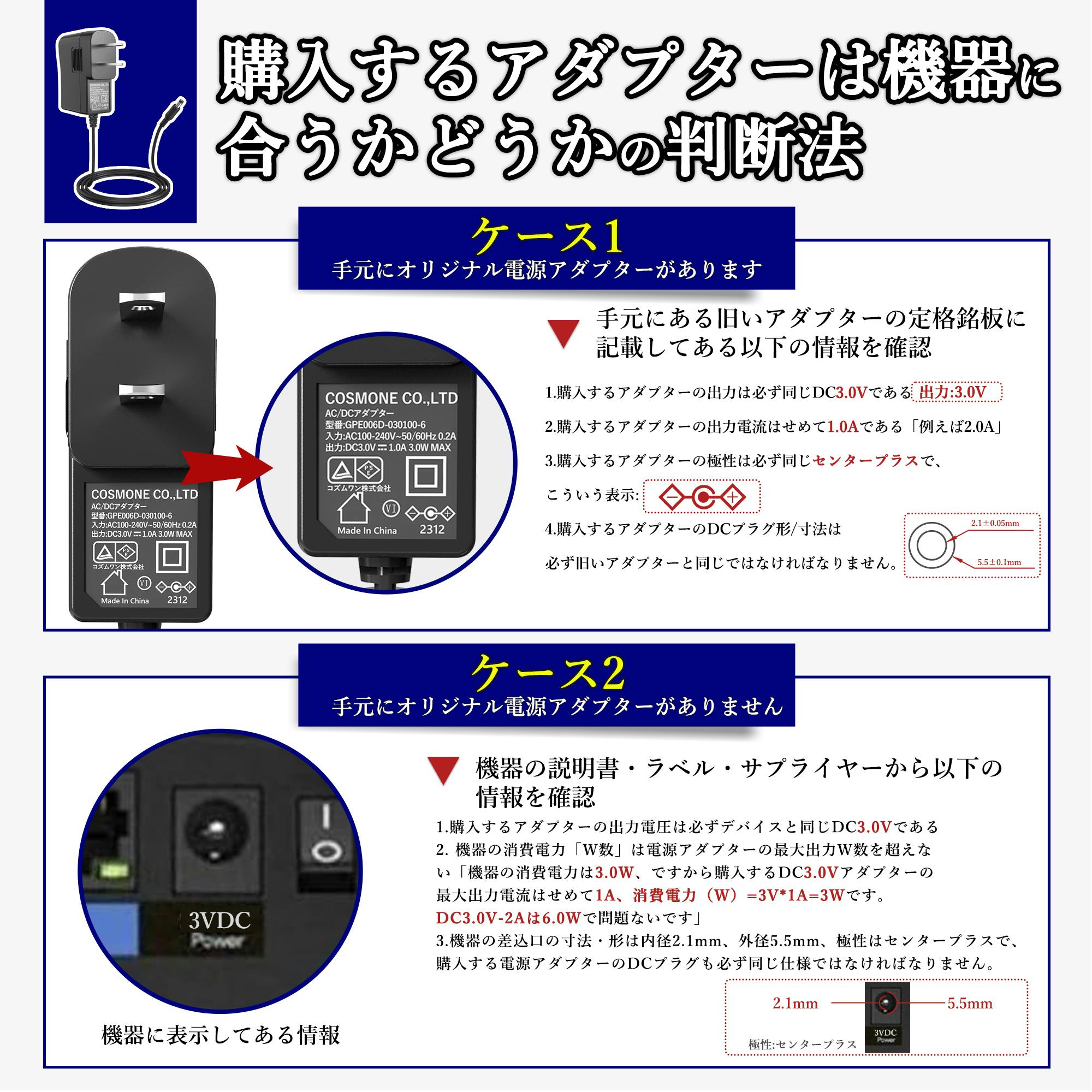 • KOZUMUWAN ACアダプター 3V 1A 3W 電源アダプター 大手メーカーOEM社製品 汎用 センタープラス スイッチング式 出力プラグ外径5.5mm(内径2.1mm) 電気安全法PSE適合品 (1A)