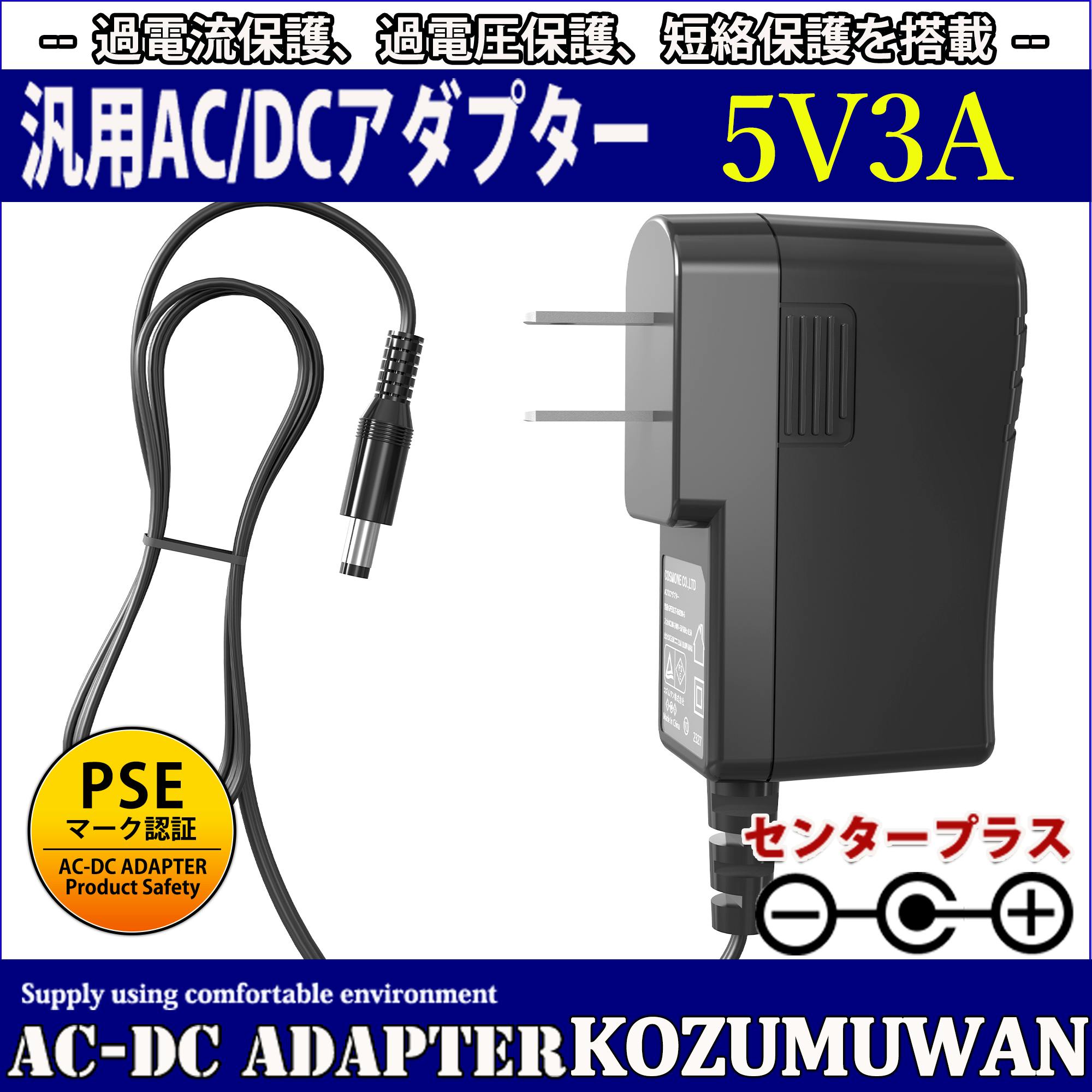 • KOZUMUWAN ACアダプター 5V 3A 15W 電源アダプター 大手メーカーOEM社製品 汎用 センタープラス スイッチング式 出力プラグ外径5.5mm(内径2.1mm) 電気安全法PSE適合品 (3A)