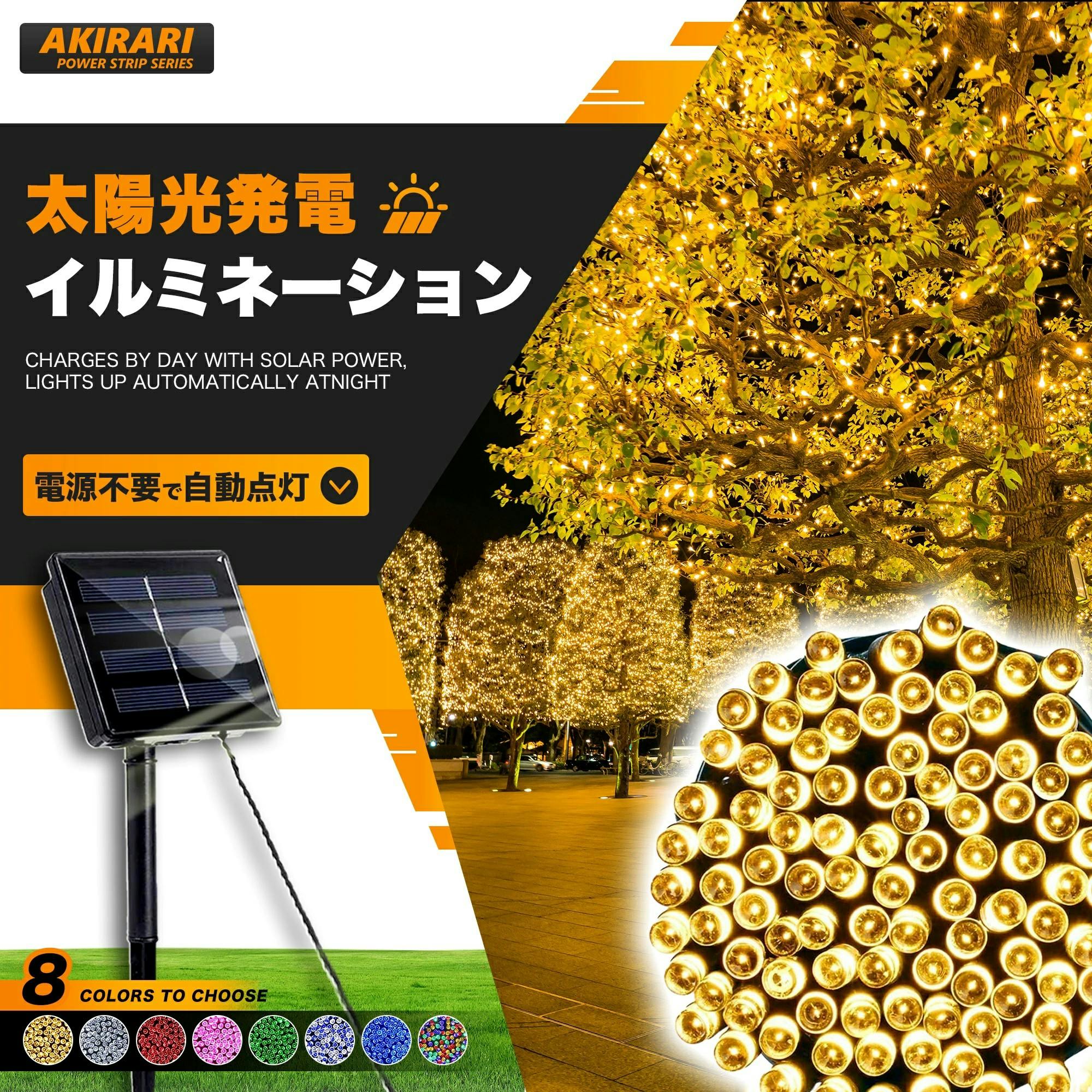 KOZUMUWAN ソーラーライト イルミネーションライト クリスマスライト ストレート 定番商品 日本法人 ソーラー充電式 8パターン 300球 30m コントローラー付き 自動ON/OFF 夜間自動点灯 昼消灯 省エネ IP65防水 ガーデン 屋外 防雨 メモリー記憶 (ブルー)