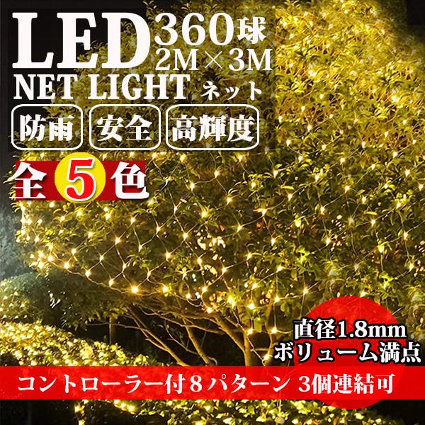 KOZUMUWAN【日本現地法人】 LEDネットライト 360球 2M3M イルミネーションライト クリスマスライト ネットライト 定番 防雨 連結可 コントローラ付 メモリ記憶 8点灯パターン 防雨型屋外使用可能 保証付 (ブルー・ホワイト)