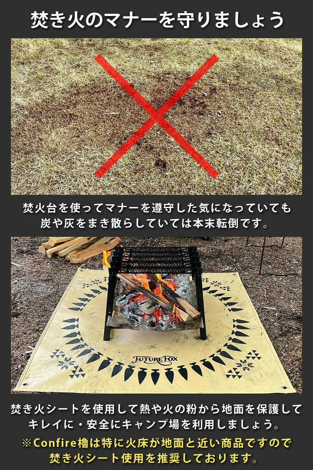【正方形の大判サイズ】サイズはFUTURE FOXが販売している焚火台の中で一番大きなナバホ柄焚き火台に一番適している80cm×80cmに設計しました。80cm×80cmと大きめに設計をしているので、ほとんどの焚き火台でご使用いただけるサイズ感です。