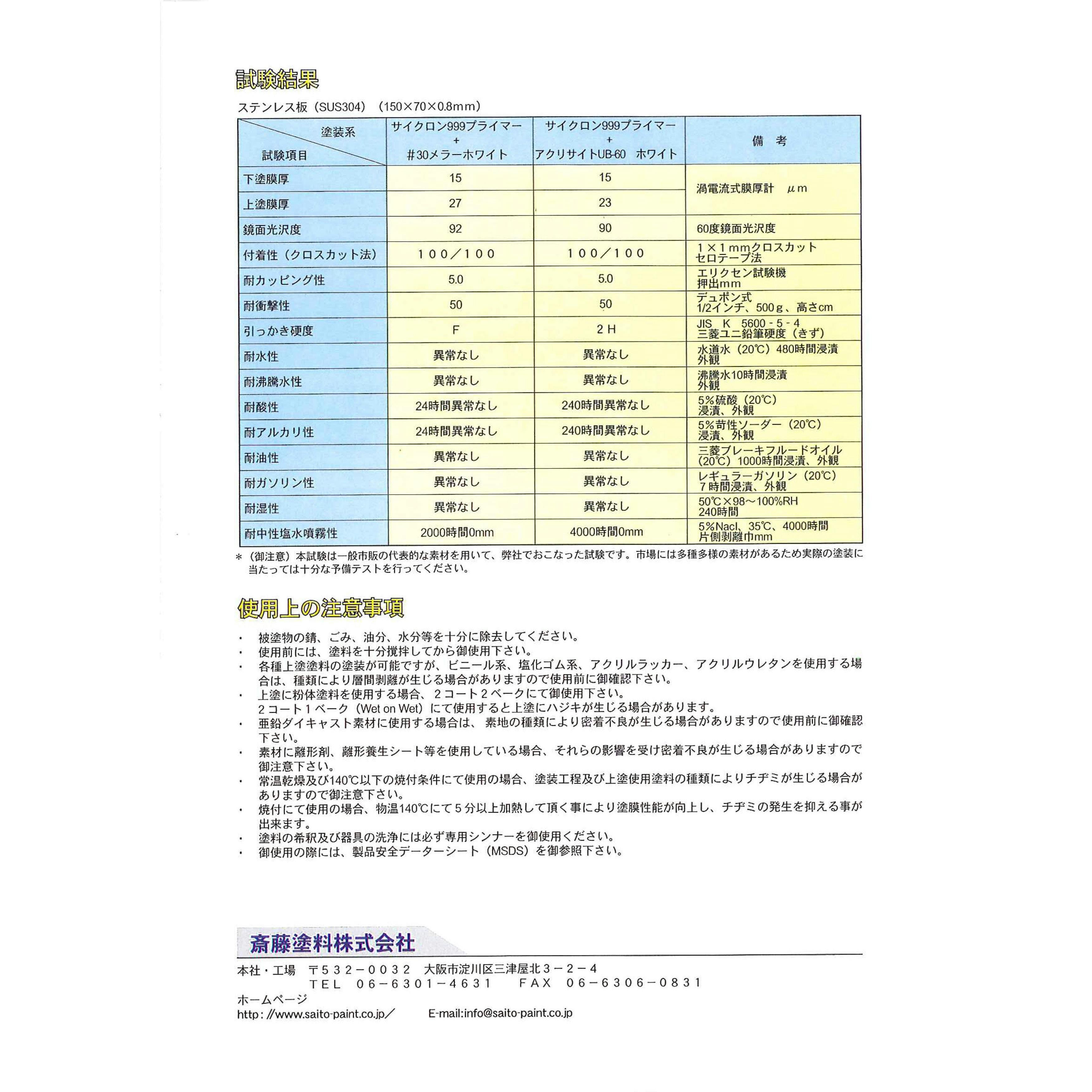※サイクロン999プライマーとの違いは、999は非鉄金属は焼付塗装を推奨、また、防錆力も極プライマーの方が優れます。