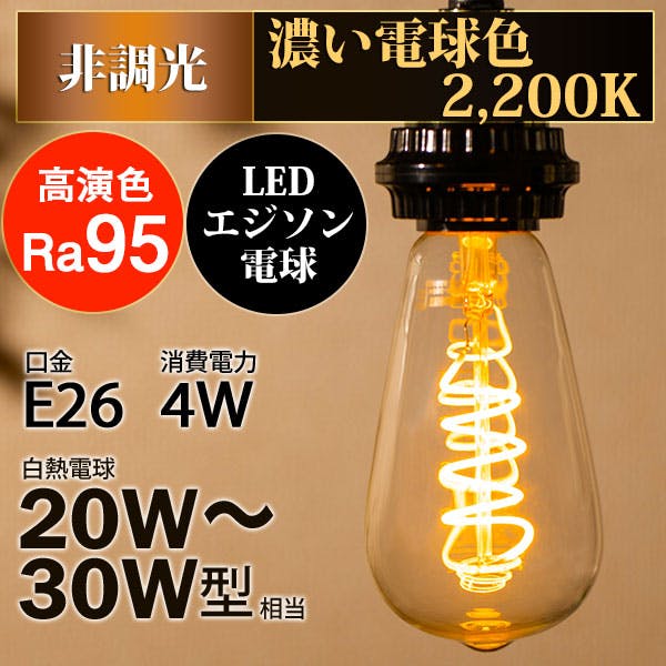 LED電球 E26 20-30形相当 高演色Ra95 エジソン電球 スパイラル 濃い電球色2200K BD-0426ST64-SPIRAL