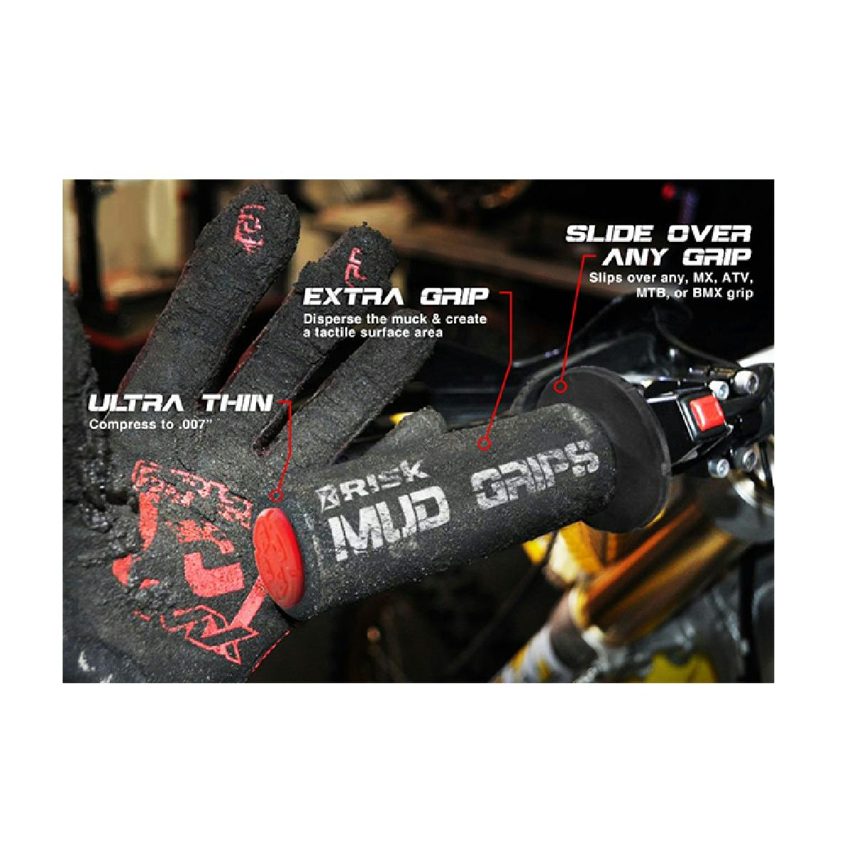 ●グリップの上に装着するだけ●泥を分散し、常に乾いた状態でグリップを握ることができます。●オフロードバイク・ATV・マウンテンバイク・チェーンソーなどのグリップで使用できます。●極薄デザインで握った時に圧縮されるため、グリップの太さが変わりません。