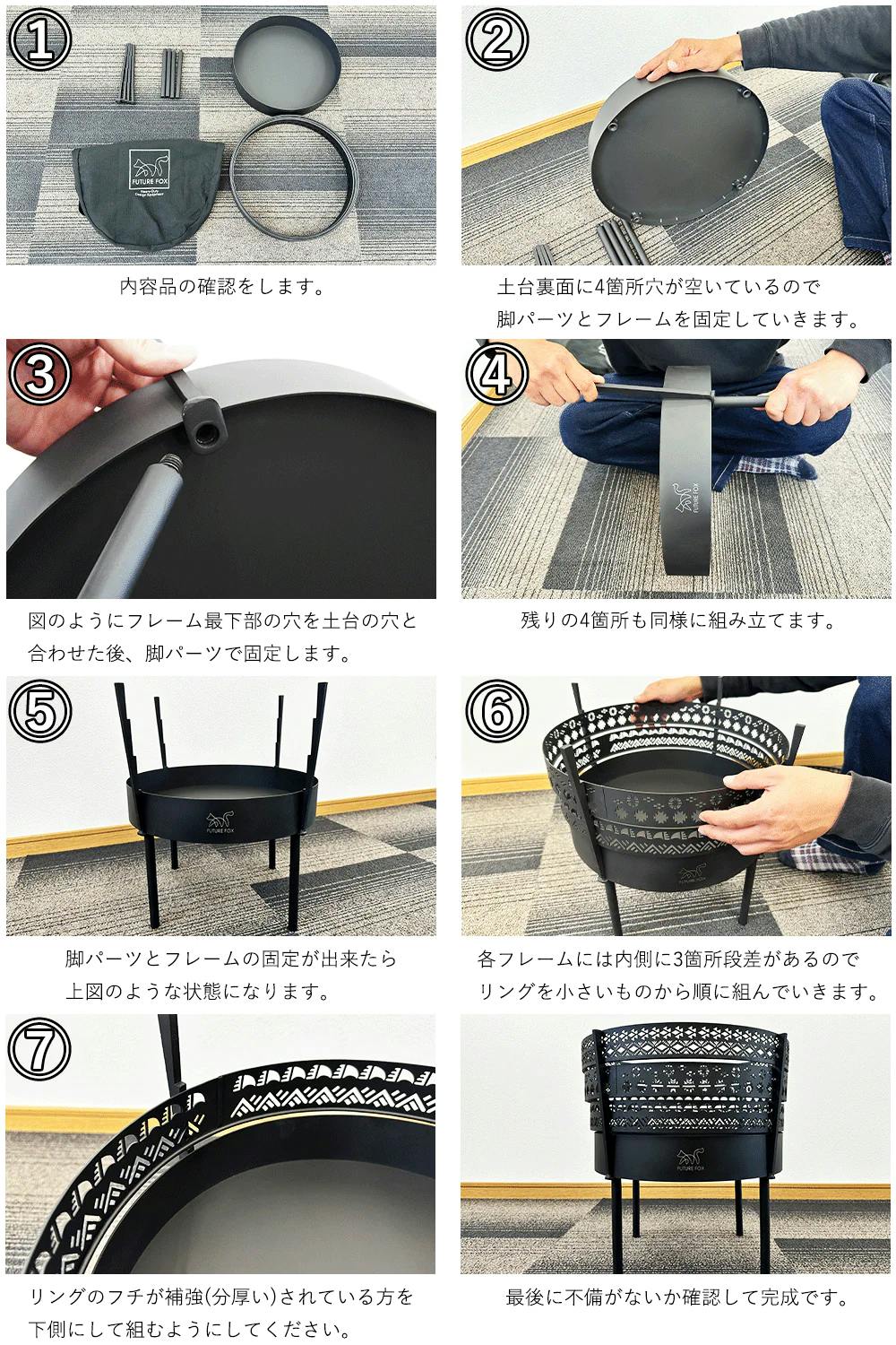 【デザインに一目惚れ、焚き火をさらに楽しくする焚き火台】本製品はFUTURE FOX人気商品のナバホ柄焚き火台を改良し、組み立て式にした焚き火台です。ナバホ柄焚き火台ではデザインに一目惚れをして、購入を決断したというお言葉をたくさんいただきました。今回は組み立て式にしたことで、持ち運びがかなりしやすい利便性に優れた焚き火台となります。