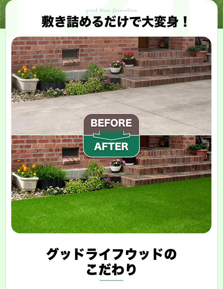 A:生産時期やロット番号により僅かに色味に差異がある場合がございます。並べてご使用の際は、同じサイズや芝丈・種類を合わせた上で1度に必要な分をまとめてのご購入を推奨しております。