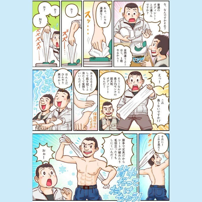 爽やかなクール感の大判ボディシートで、さらに保湿成分も配合されています。