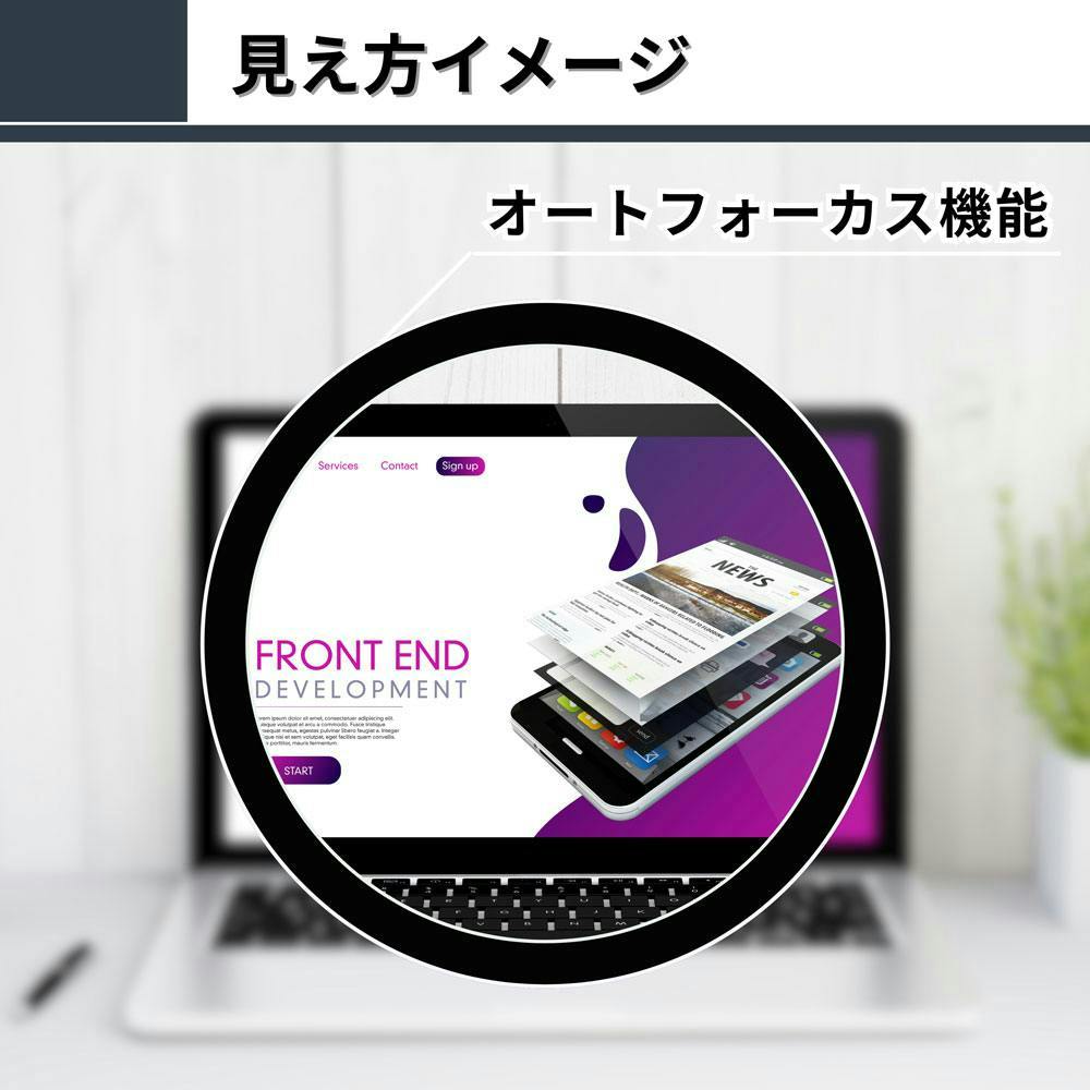 最初にピントの調整を設定するだけで、特に設定や操作が不必要のシンプルなデジタルデバイスです。連続使用時間も最大10時間なので忘れがちな充電でも安心してご利用できます。