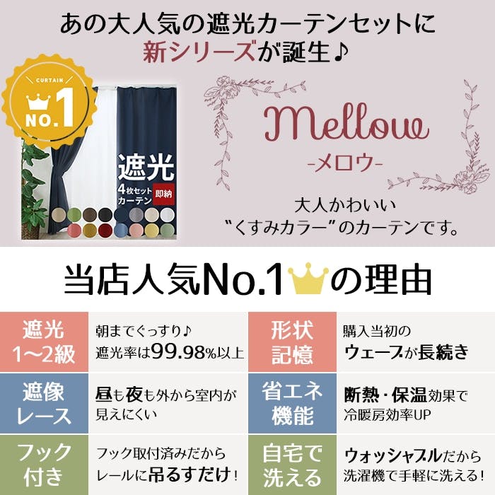 ■厚手カーテン:ウォッシャブル、遮光1級、形状記憶加工 ■レースカーテン:ウォッシャブル、UVカット、ミラーレース、防視認性、断熱、保温効果