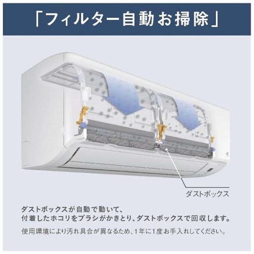 ■仕様■ ・サイズ(約):室内機(幅×高さ×奥行)798×295×272mm、室外機(幅×高さ×奥行)873×610×342mm ・質量(約):(室内機/室外機)11.0kg/35.0kg ・電源:単200V 20A ・消費電力(W):冷房時:1,290( 120~1,740 )、暖房時:1,330( 115~2,880 ) ・低温暖房能力:5.6kW ・通年エネルギー消費効率(APF):5.2