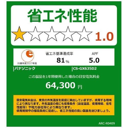 メーカー:パナソニック JAN:4549980881576 型番:CS-GX635D2-W ■商品説明■ ●「ナノイーX」でお部屋もエアコン内部も清潔 ●充実の冷暖房機能で快適 ●「エオリアアプリ」で操作が簡単・便利