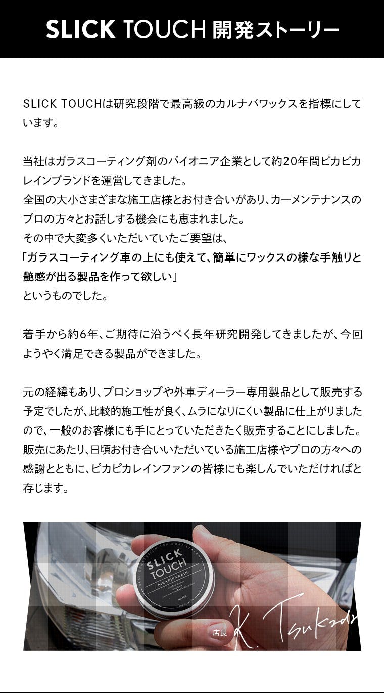 ピカピカレイン SLICK TOUCH スリックタッチ トップコート 180ml コーティング剤 ガラス系 コーティング 滑水性 撥水性 スリック性 極艶 ツヤ 高耐久 厚膜