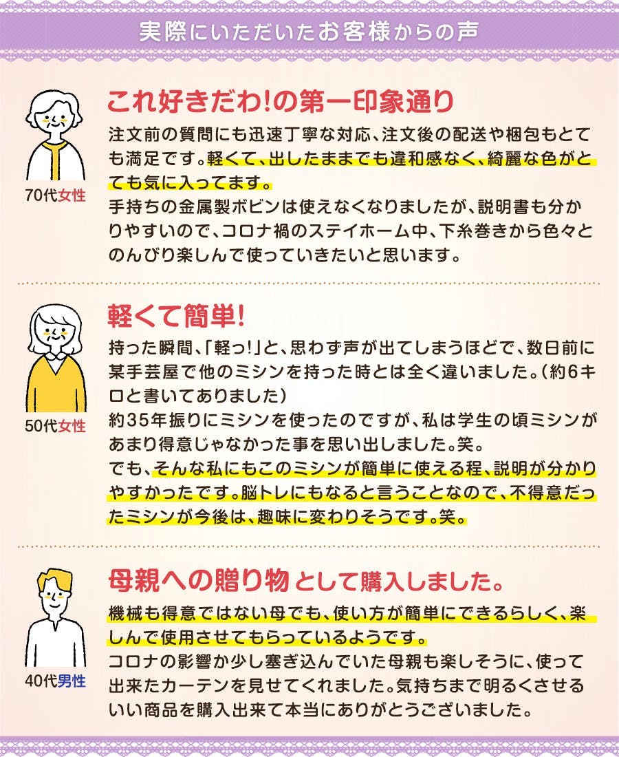 準備セット付(ミシン糸1個・ミシン針5本パック・ボビン10個セット)