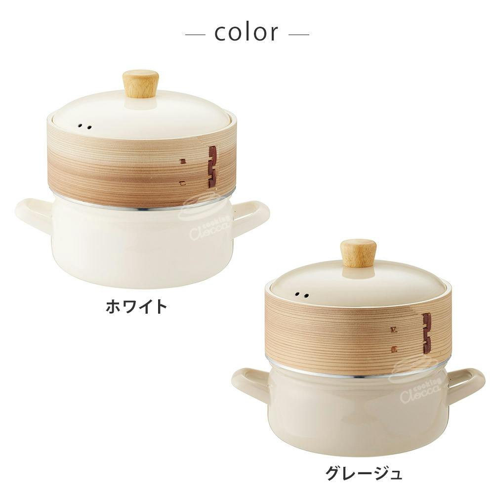 せいろ付きホーロー鍋 18cm 富士ホーロー ガス火 IH対応 シリコンメッシュシート SER-18W【琺瑯 両手鍋 竹せいろ 蒸篭 中華セイロ 蒸し セット 蒸し鍋 スチーマー】 ホワイト2段
